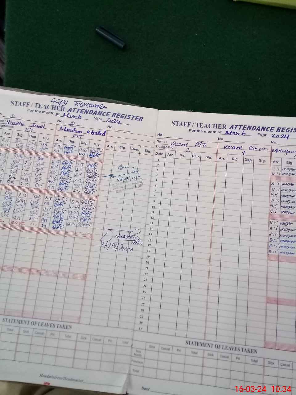 | Name: Sh**** Ja**** Designation: (School Headmaster's/Headmistress's) PST Phone/Cell Number: 03**** |