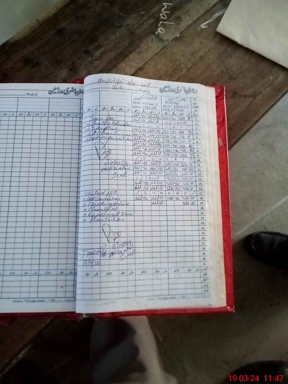 | CNIC | Full Name | Designation | R/C | Absence During Last Calender Month |