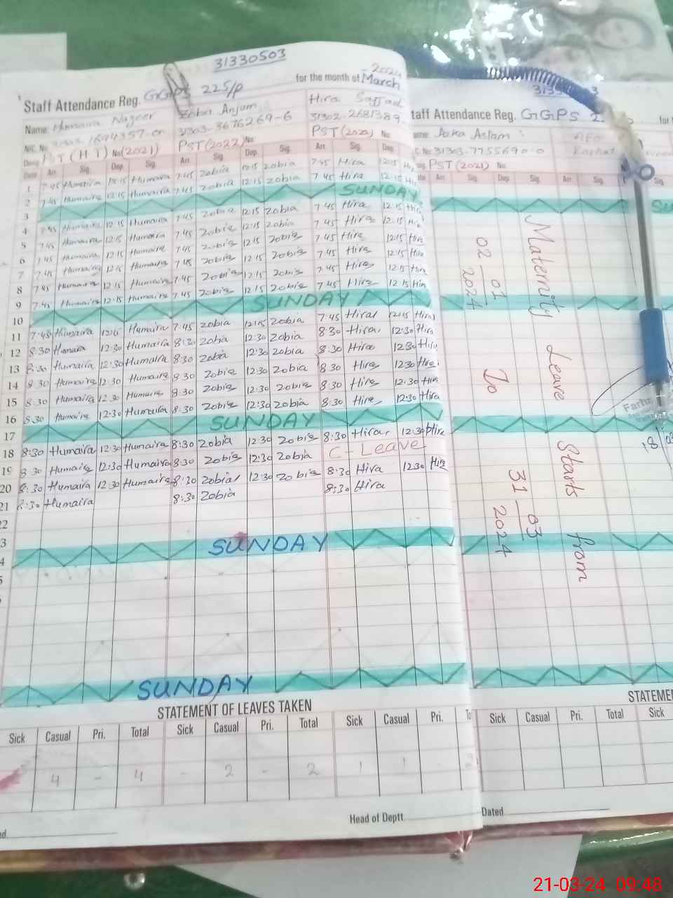 | 31**** | Az**** As**** | PST | Regular | 29 | 0 | 0 | 29 | 0 | 0 | 0 | 0 | 0 | Maternity |