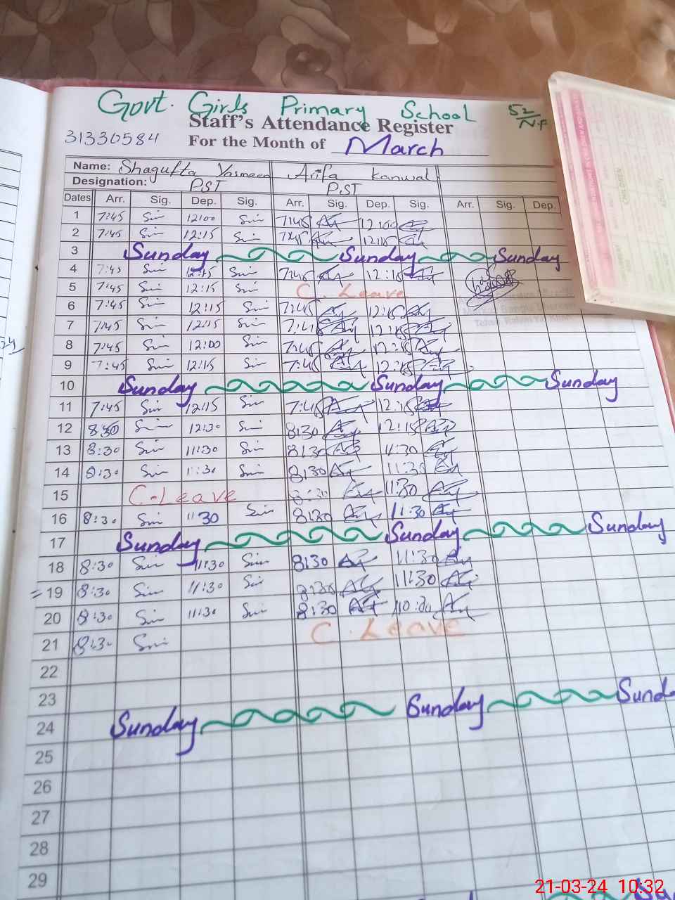 | Name: Sh**** Ya**** Designation: (School Headmaster's/Headmistress's) PST Phone/Cell Number: 03**** |