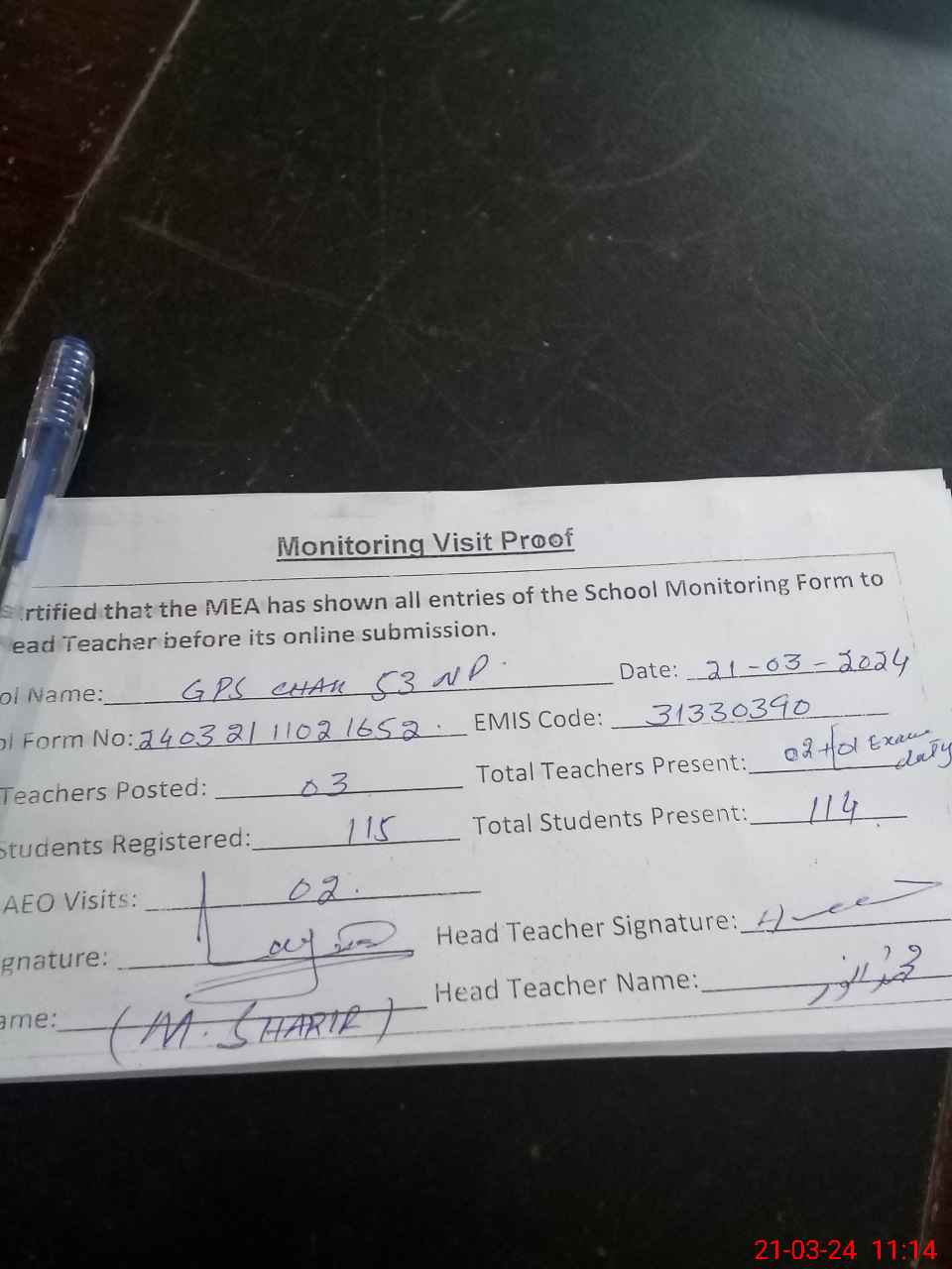 | Name: Mu**** Ma**** Iq**** Designation: (School Headmaster's/Headmistress's) PST Phone/Cell Number: 03**** |
