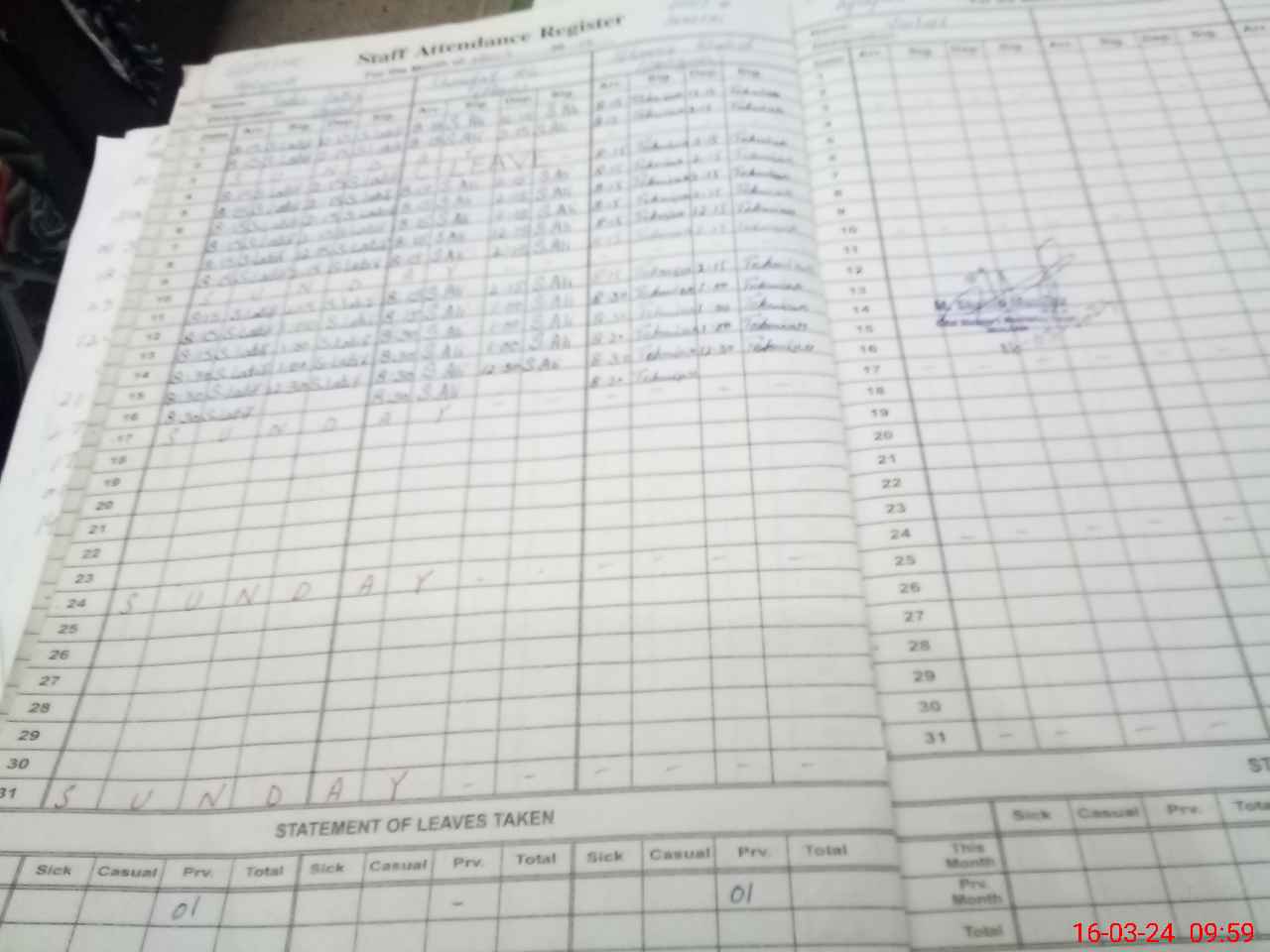 | Leave | Duty | Absent | Maternity | Medical | Ex- Pak |