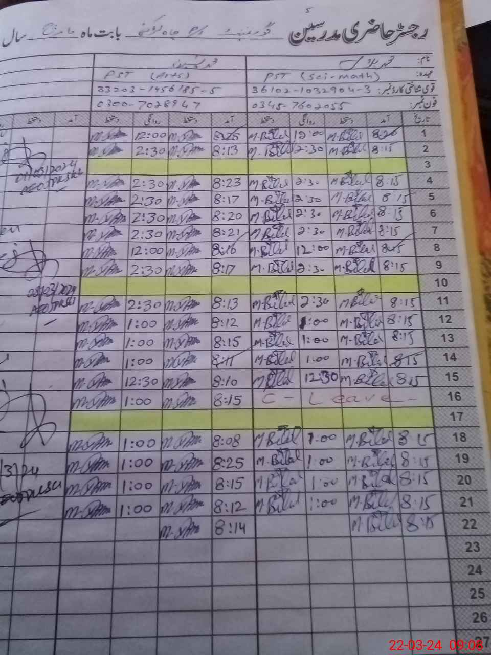 | Name: MBi**** Designation: (School Headmaster's/Headmistress's) PST Phone/Cell Number: 03**** |
