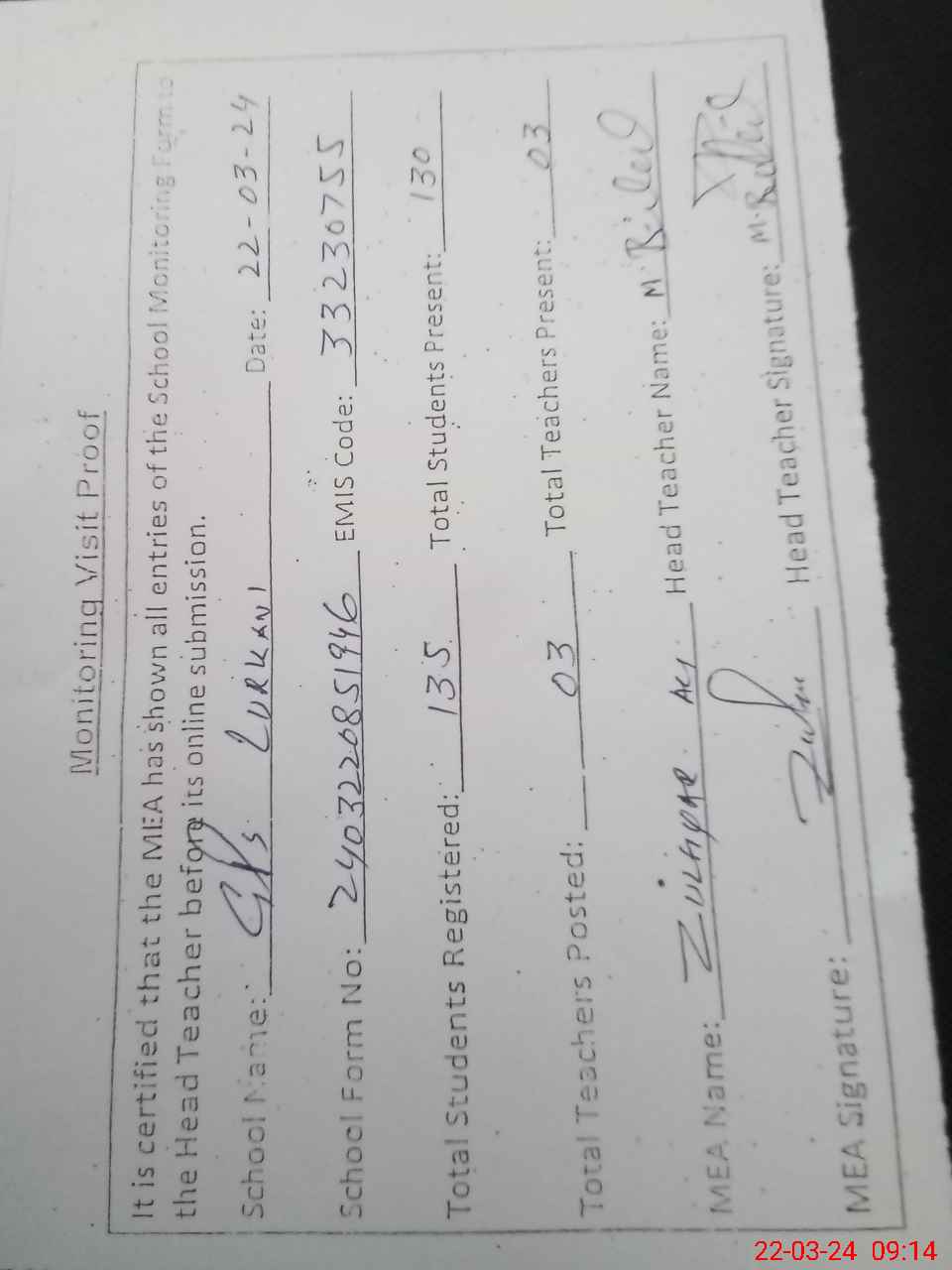 | EMIS Code: 33230755 | Name of School: GPS CHAH LURKANI | |||