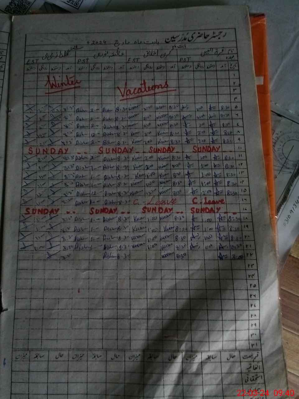 | Leave | Duty | Absent | Maternity | Medical | Ex- Pak |