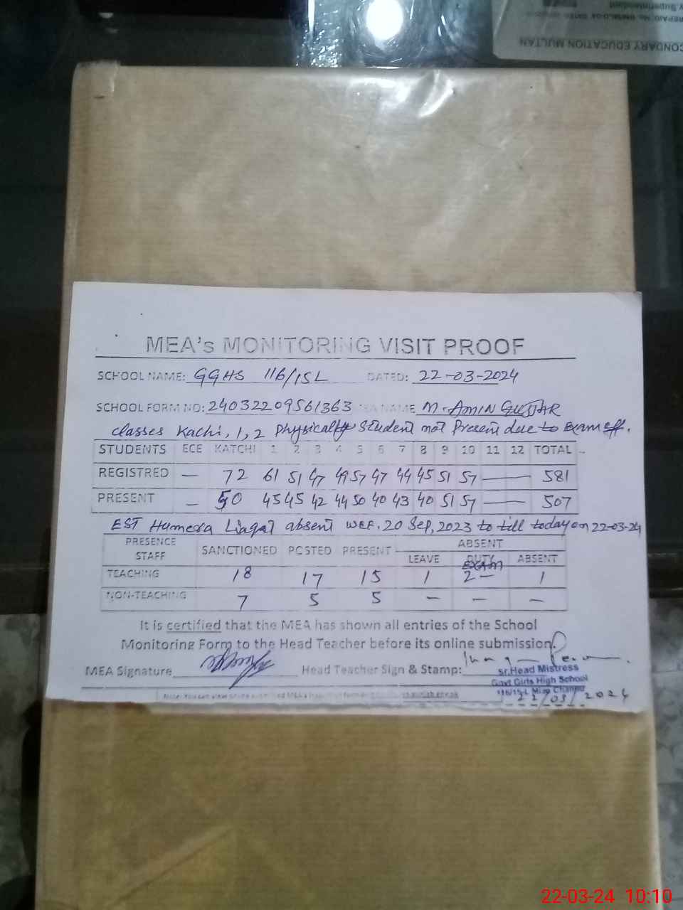 | EMIS Code: 36430038 | Name of School: GGHS 116/15-L, MIAN CHANNU | |||
