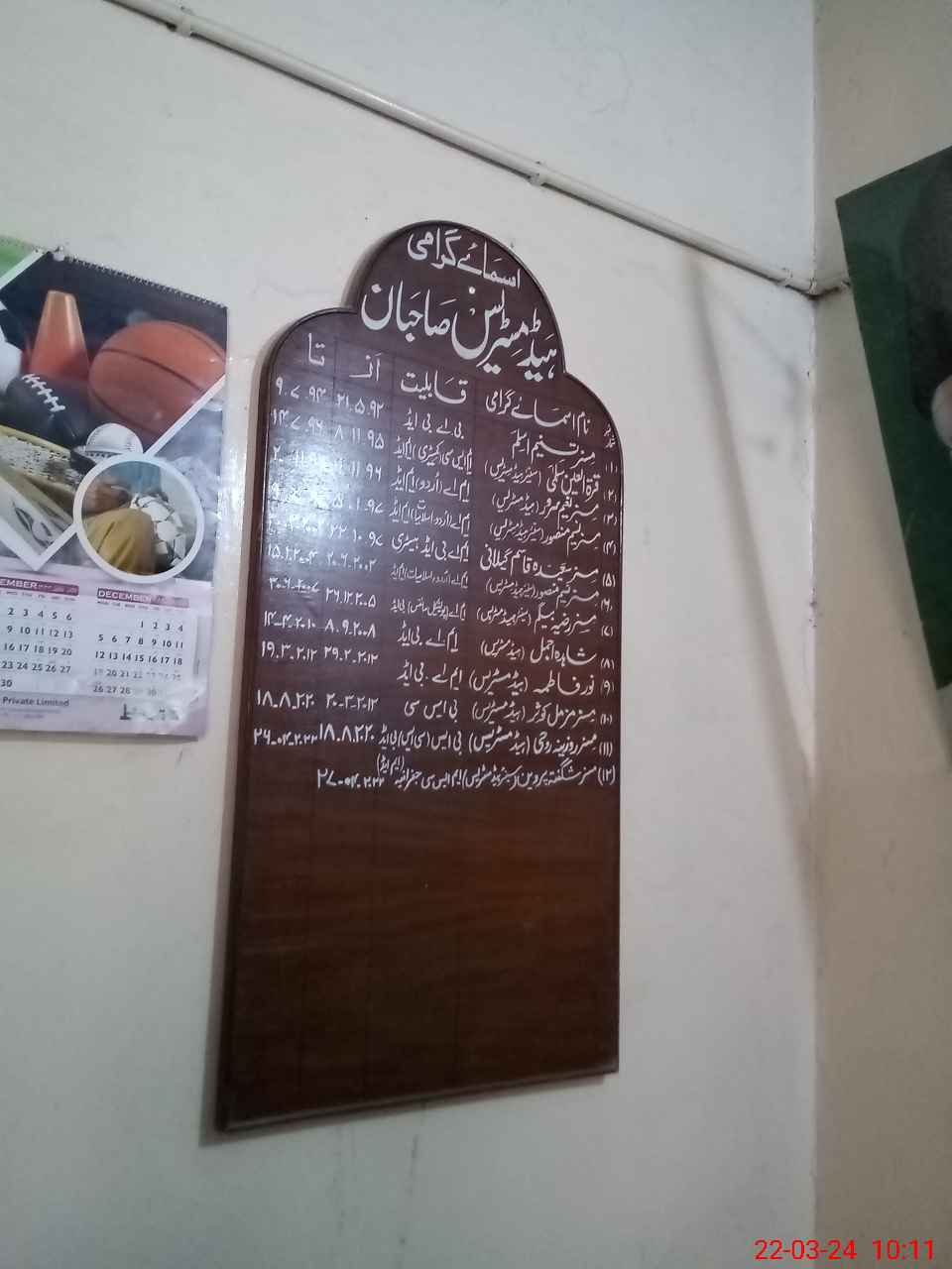 | Name: Ta**** Ya**** Designation: (School Headmaster's/Headmistress's) Incharge Head Mistress SST Phone/Cell Number: 03**** |