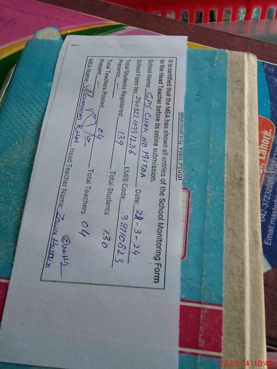 | EMIS Code: 38110823 | Name of School: GPS CHAK NO 191 TDA | |||
