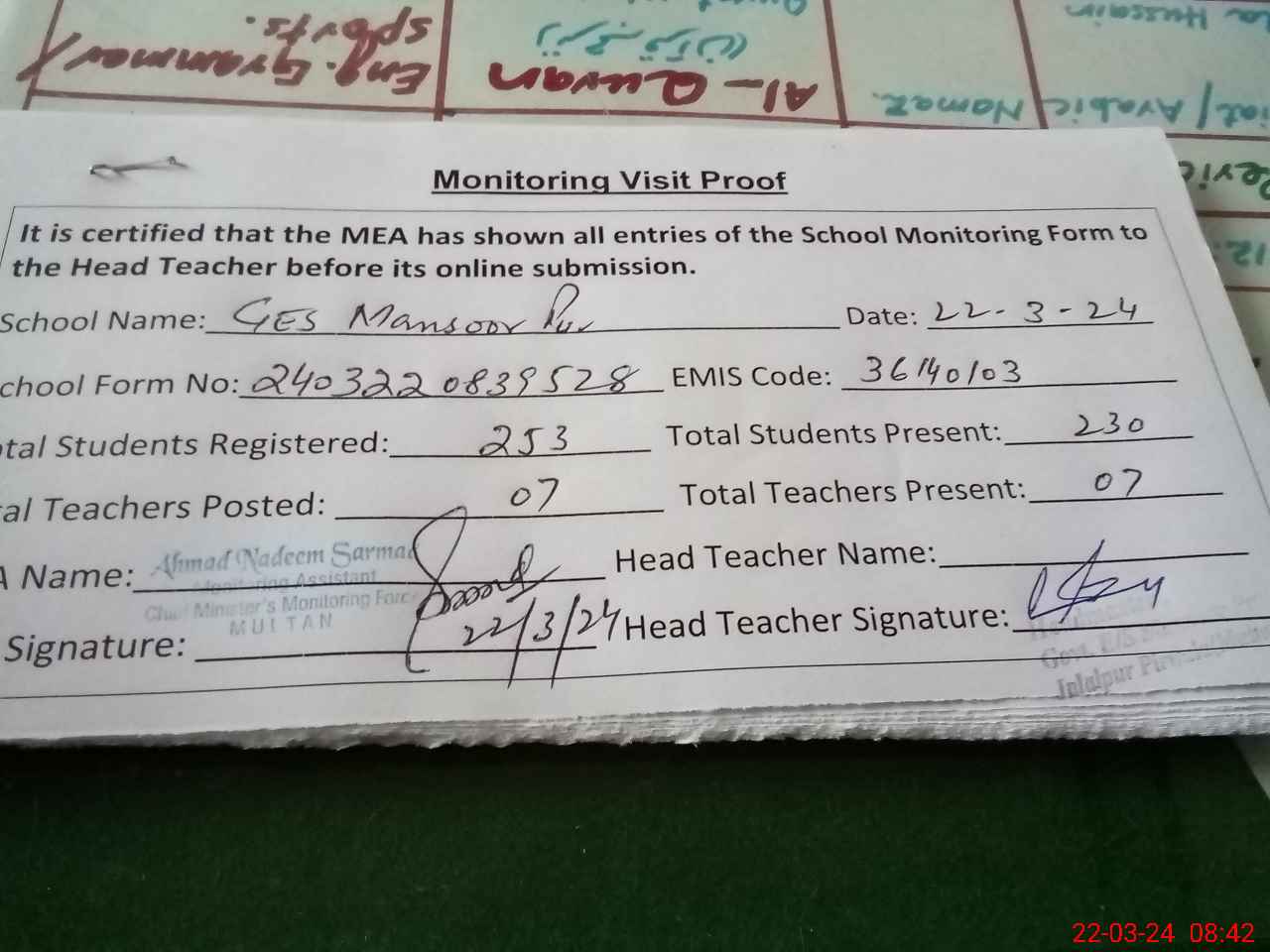 | Certified that this School was Inspected by the Undersigned MEA/DMO Today and the Information Stated Above is as Per Record. | |||||
