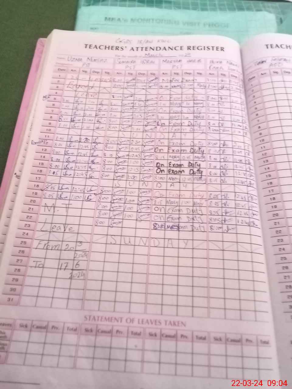 | 42**** | Uz**** Mu**** | PST | Regular | 4 | 0 | 0 | 0 | 0 | 0 | 0 | 4 | 0 | Maternity |