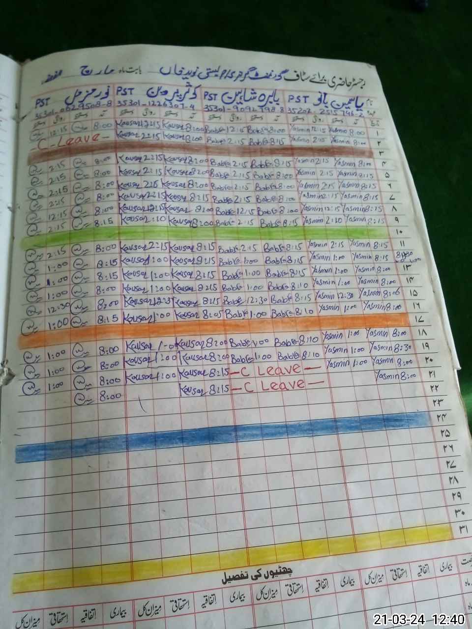 | Leave | Duty | Absent | Maternity | Medical | Ex- Pak |