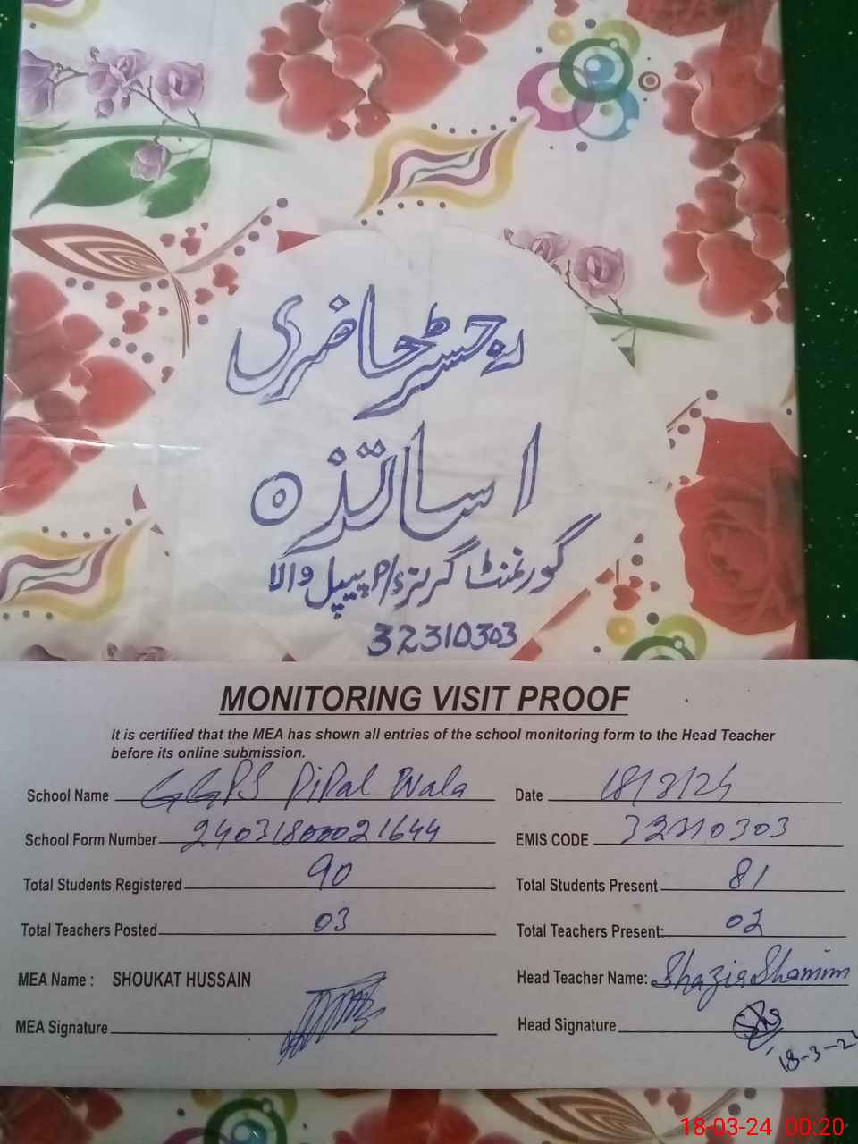| EMIS Code: 32310303 | Name of School: GGPS PIPAL WALA | |||