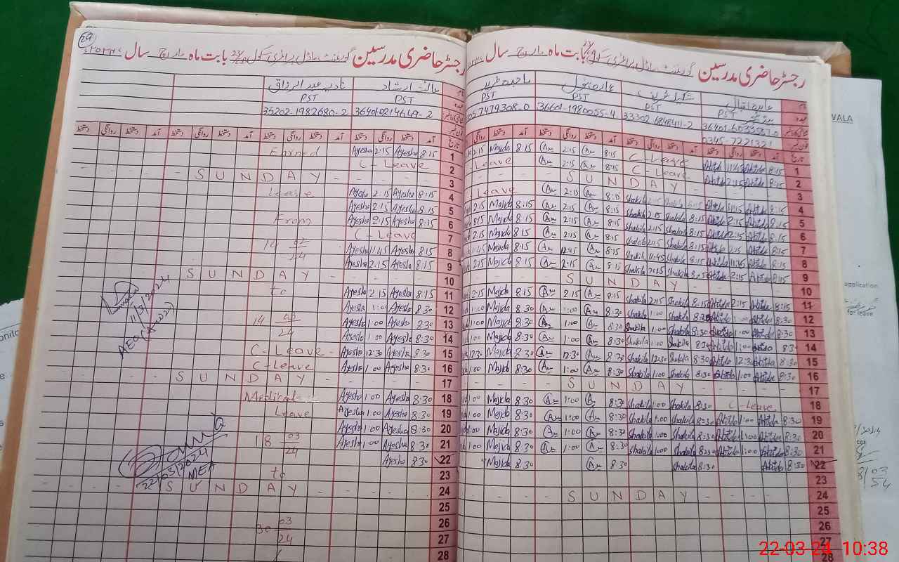| Name: AY**** IR**** Designation: (School Headmaster's/Headmistress's) PST Phone/Cell Number: 03**** |