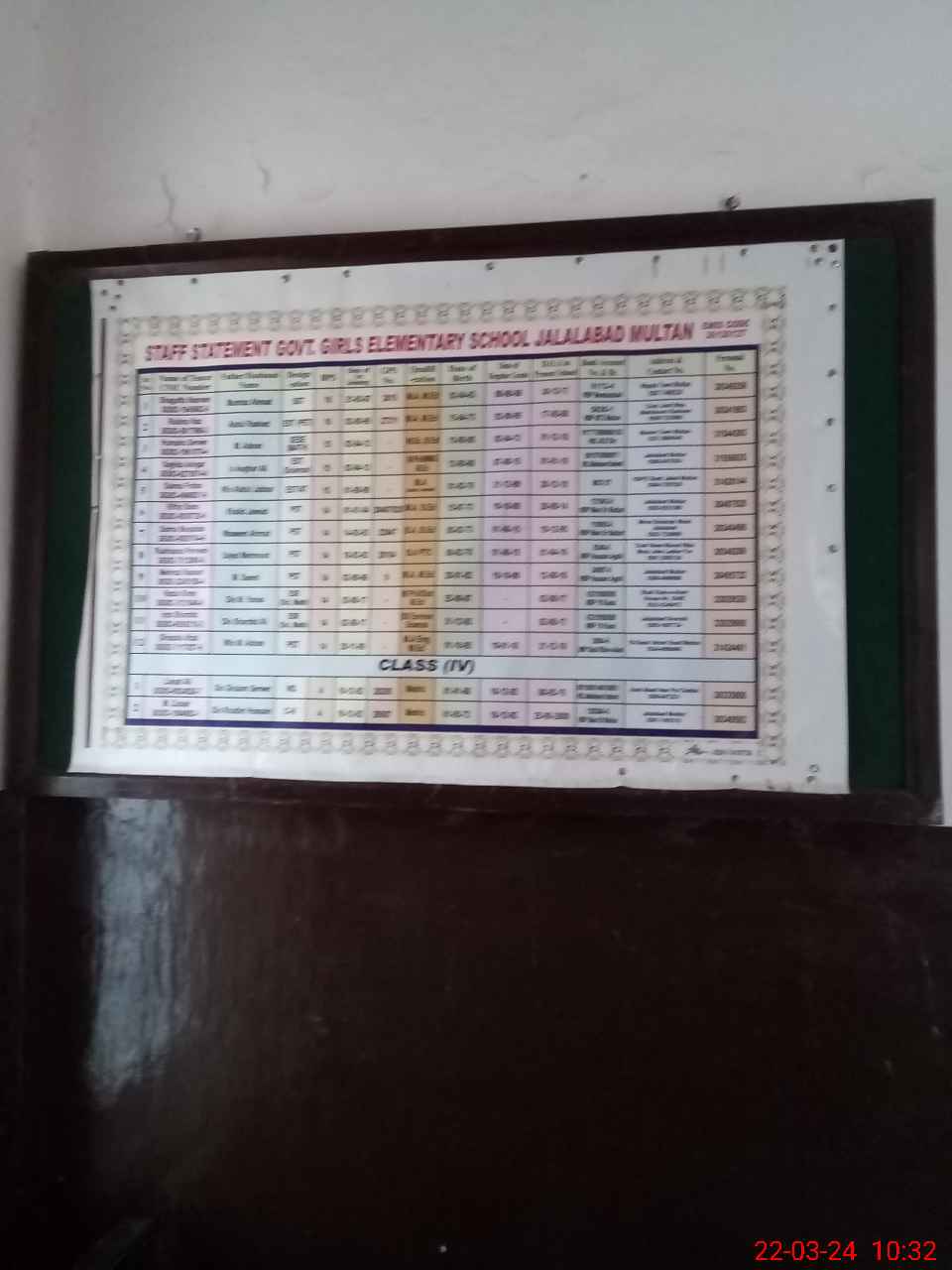 | District: MULTAN | Tehsil: MULTAN SADAR | Markaz: BUDHLA SANT - FEMALE | Level: Middle | |