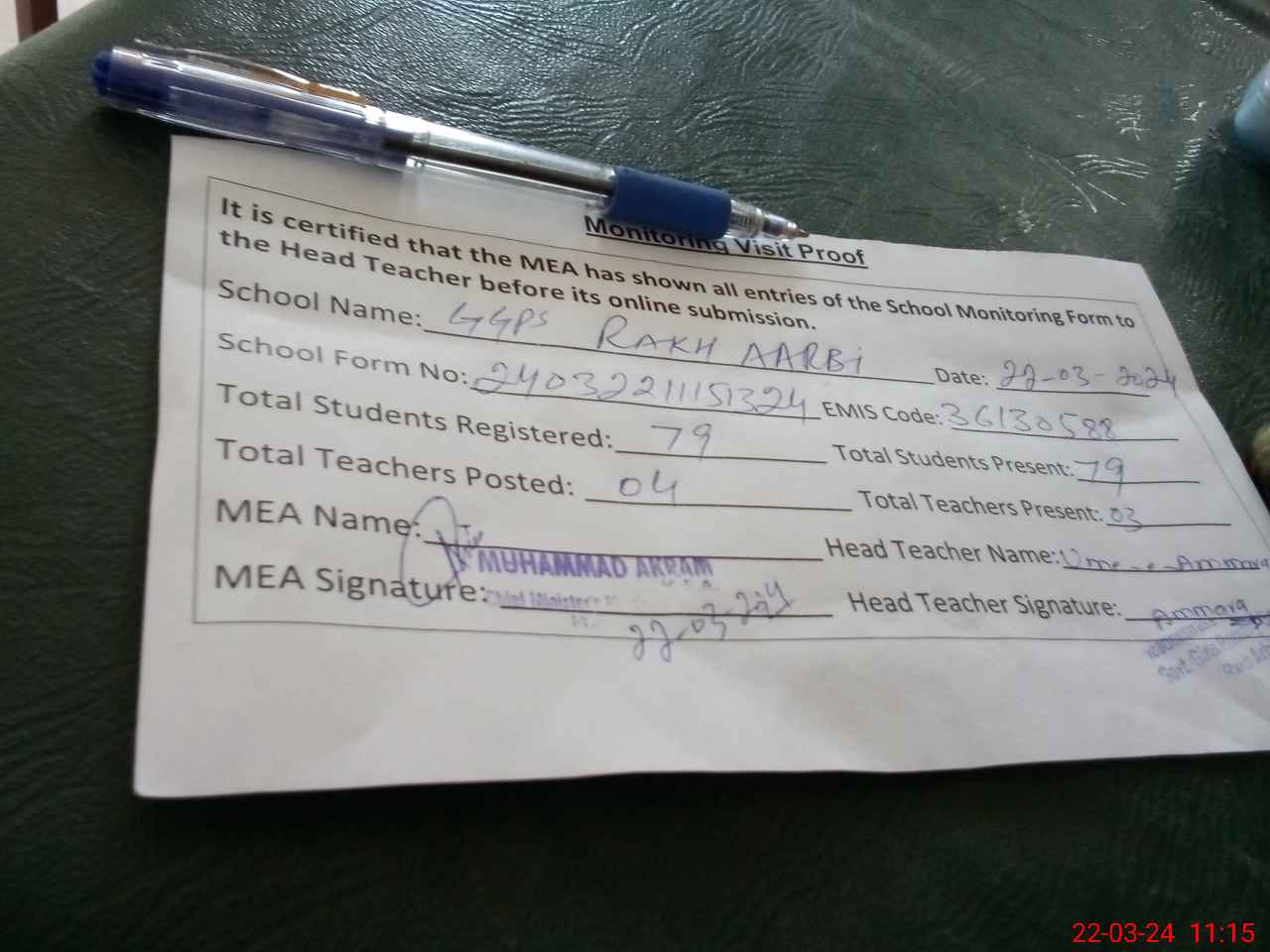 | EMIS Code: 36130588 | Name of School: GGPS RAKH AARBI JALALABAD | |||