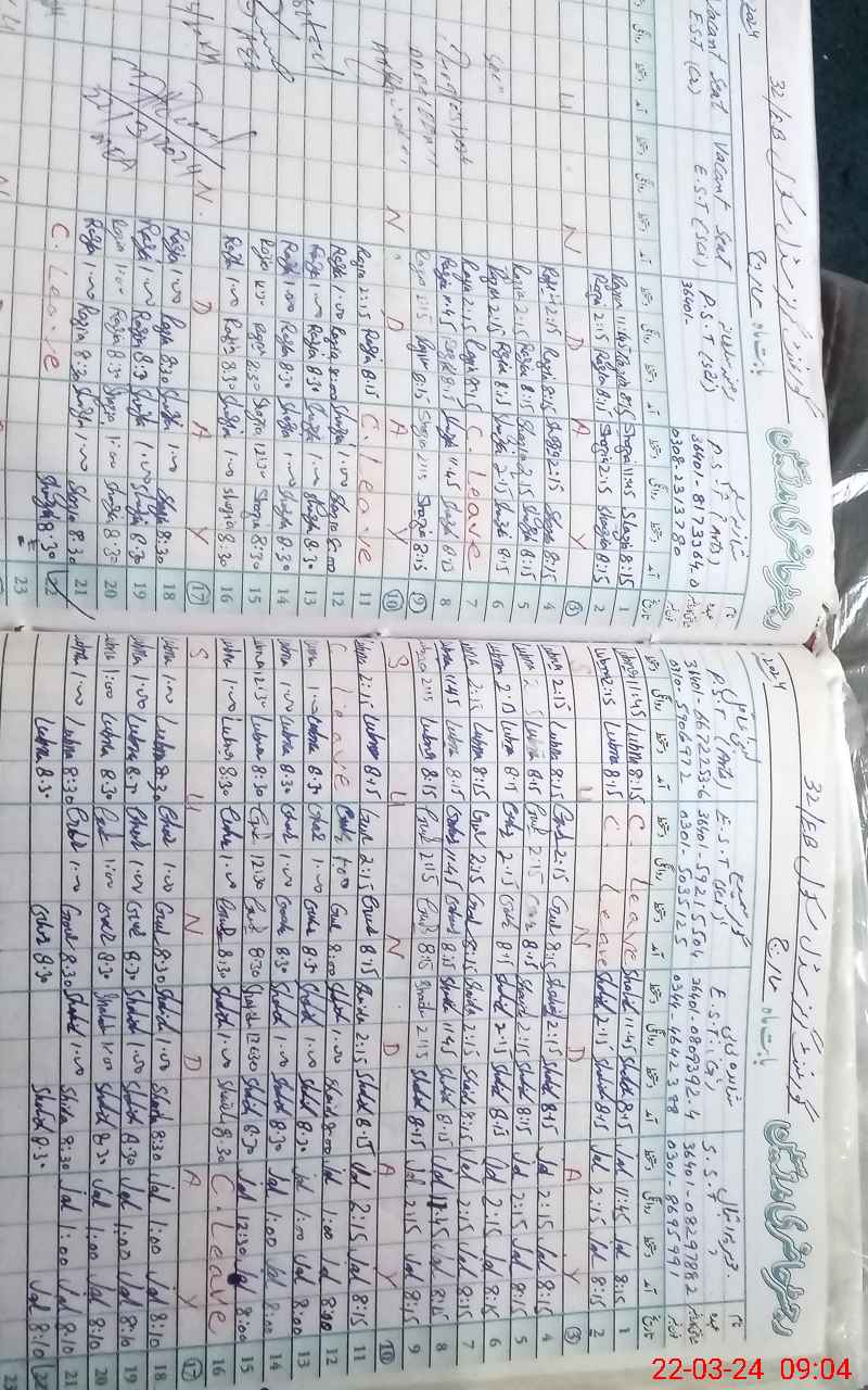 | CNIC | Full Name | Designation | R/C | Absence During Last Calender Month |