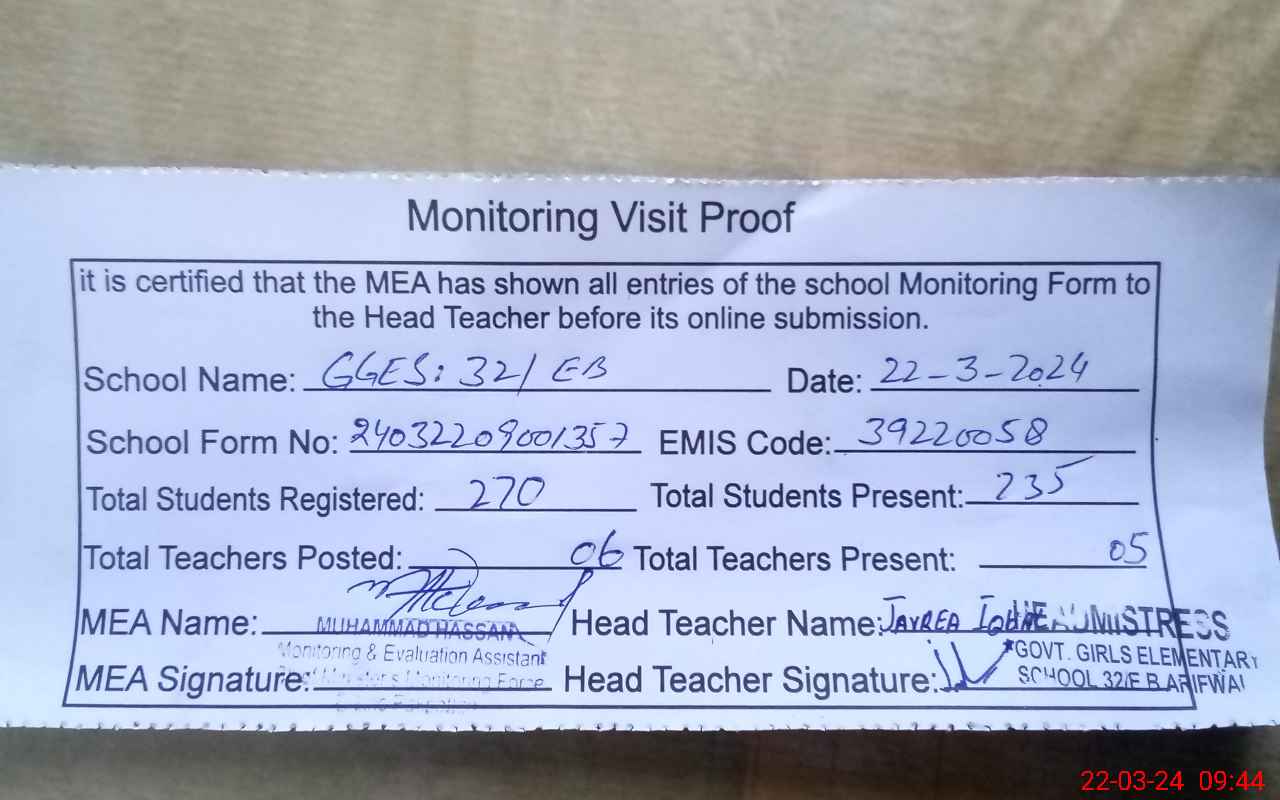 | EMIS Code: 39220058 | Name of School: GGES CHAK NO.32 EB | |||