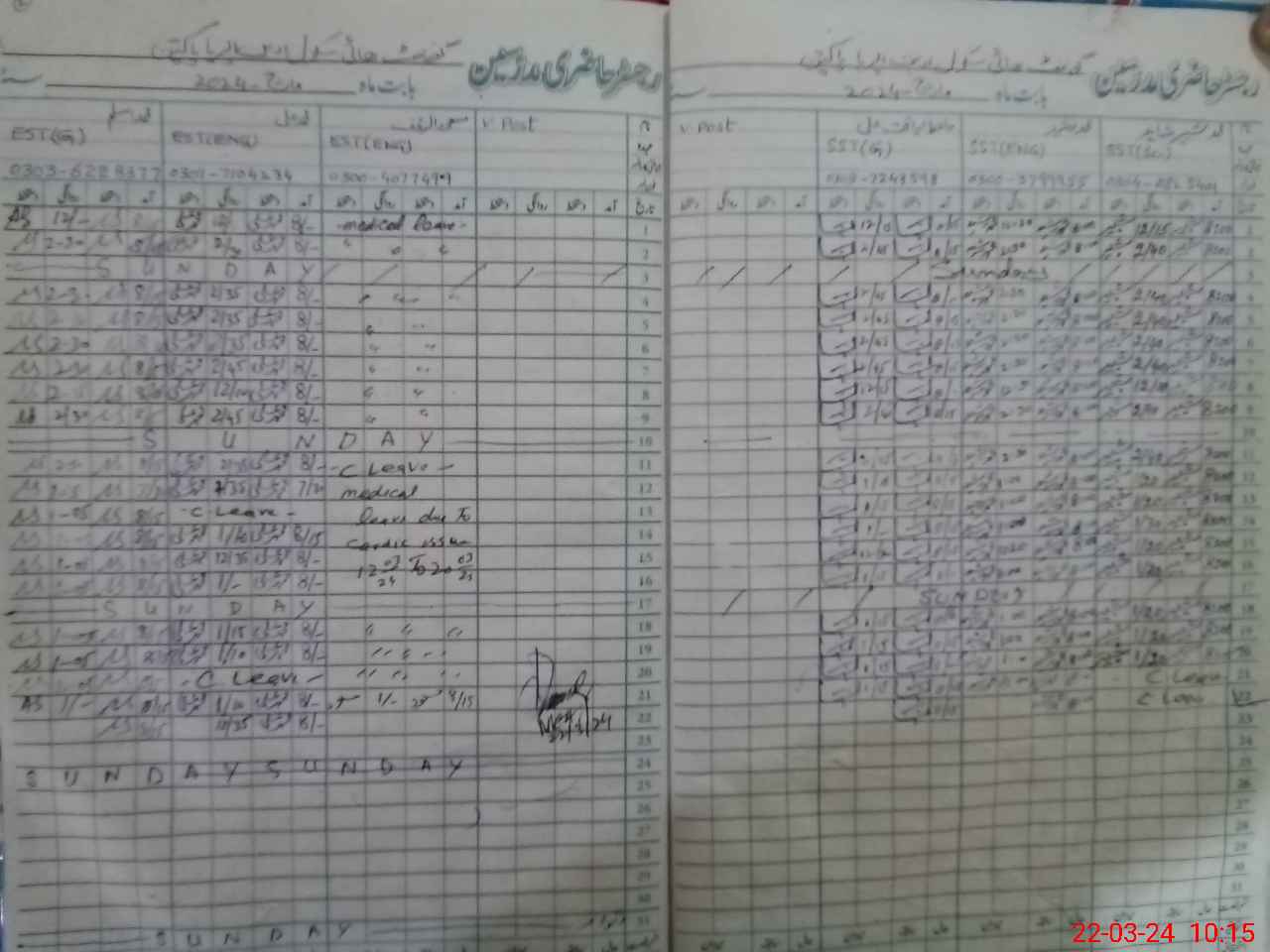 | CNIC | Full Name | Designation | R/C | Absence During Last Calender Month |