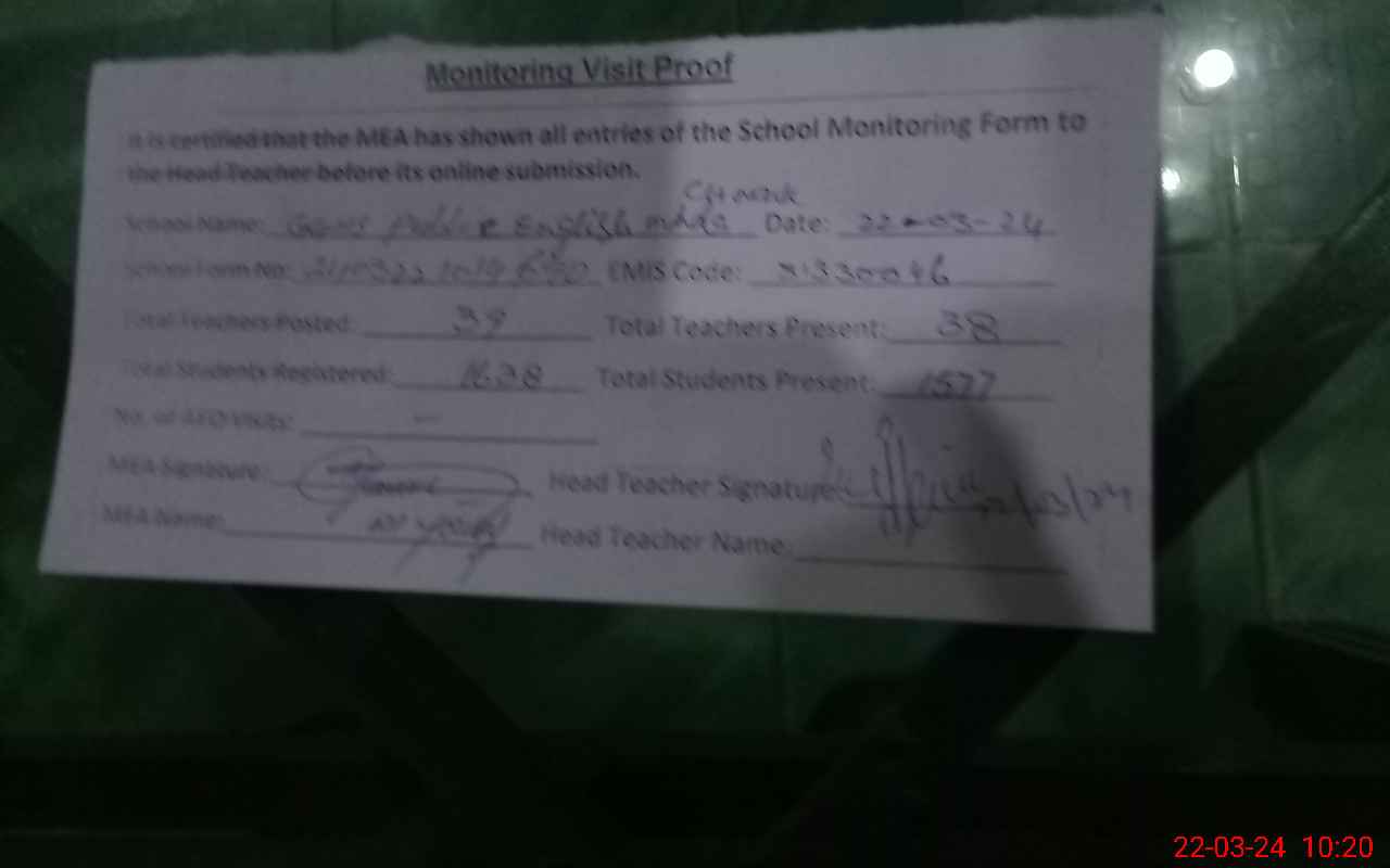 | EMIS Code: 31330046 | Name of School: GGHS PUBLIC ENGLISH MOHALLA CH. NAIKE | |||