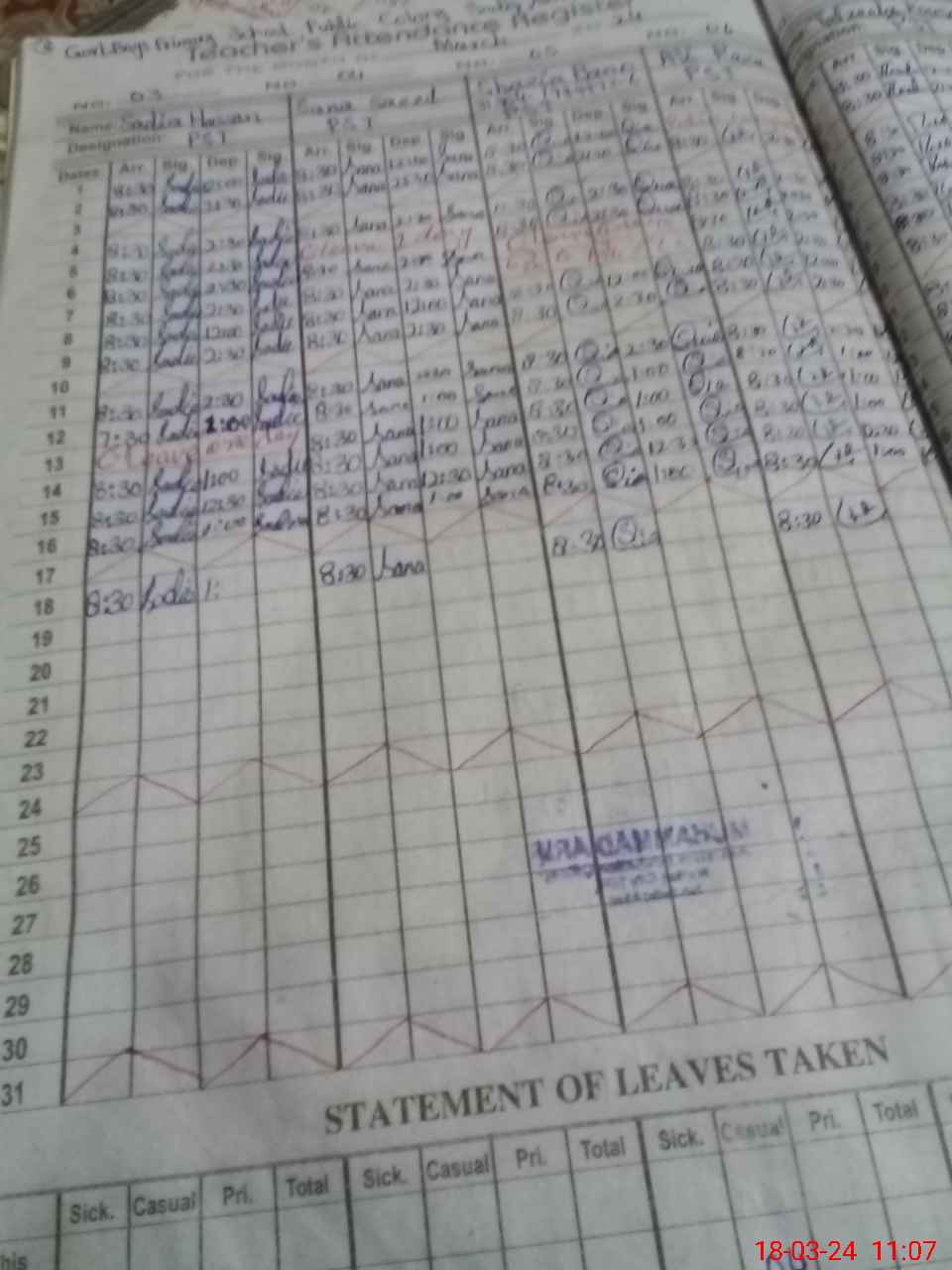 | Name: SH**** AH**** Designation: (School Headmaster's/Headmistress's) PST/PTC/JV Phone/Cell Number: 03**** |