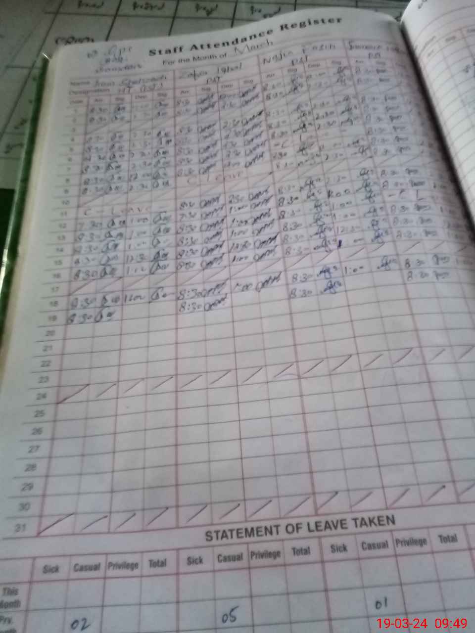 | Leave | Duty | Absent | Maternity | Medical | Ex- Pak |