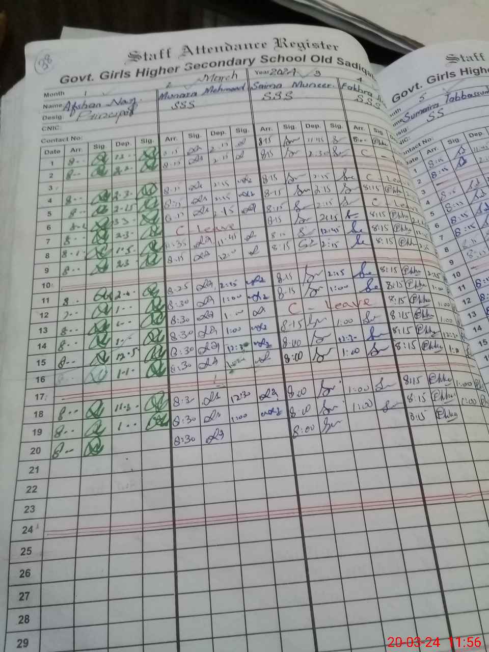 | CNIC | Full Name | Designation | R/C | Absence During Last Calender Month |