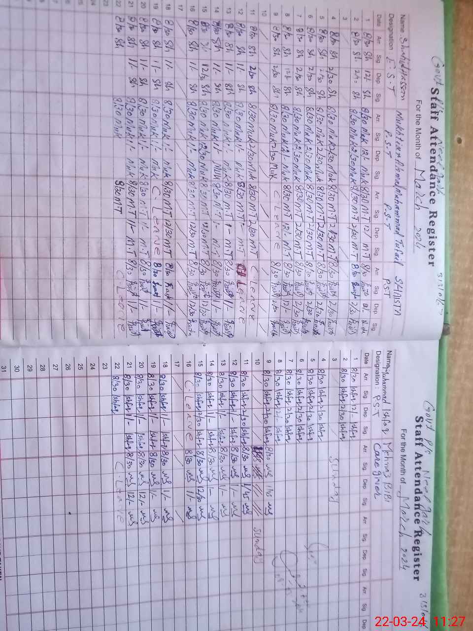 | CNIC | Full Name | Designation | R/C | Absence During Last Calender Month |