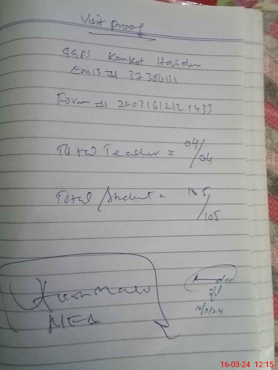 | EMIS Code: 37350111 | Name of School: GGPS KAMKOT HAIDER | |||