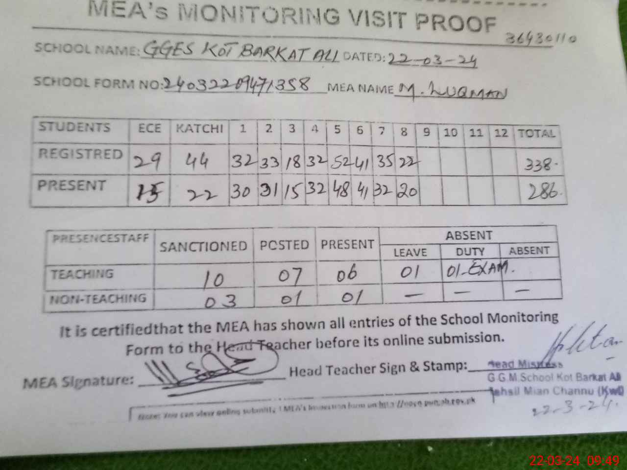 | EMIS Code: 36430110 | Name of School: GGES KOT BARKAT ALI, TULAMBA | |||