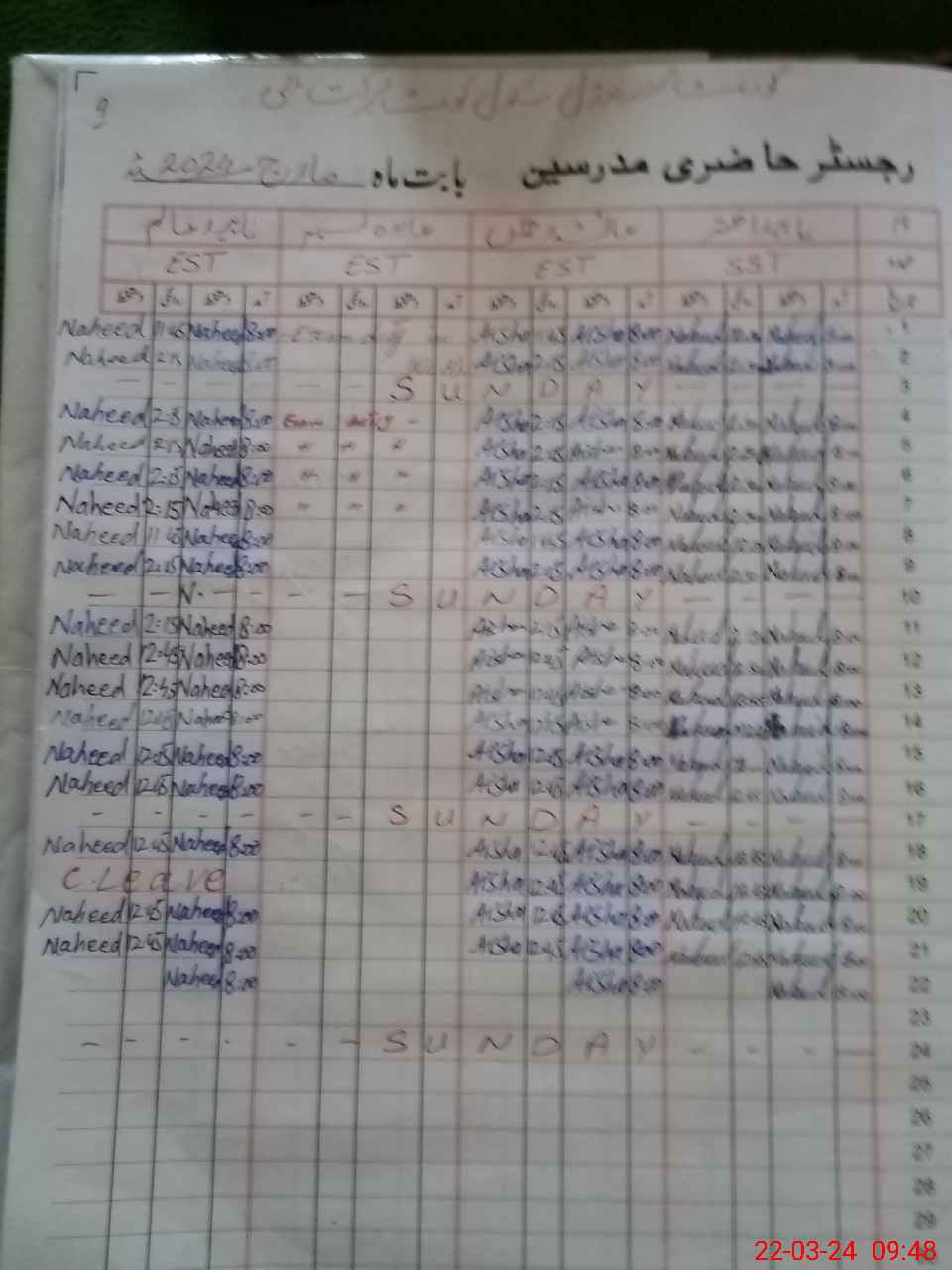 | 36**** | Ab**** Na**** | 1 | 1 | 9 | 0 | 0 | 0 | 0 | 0 | 0 | 1 | Exam Duty | |