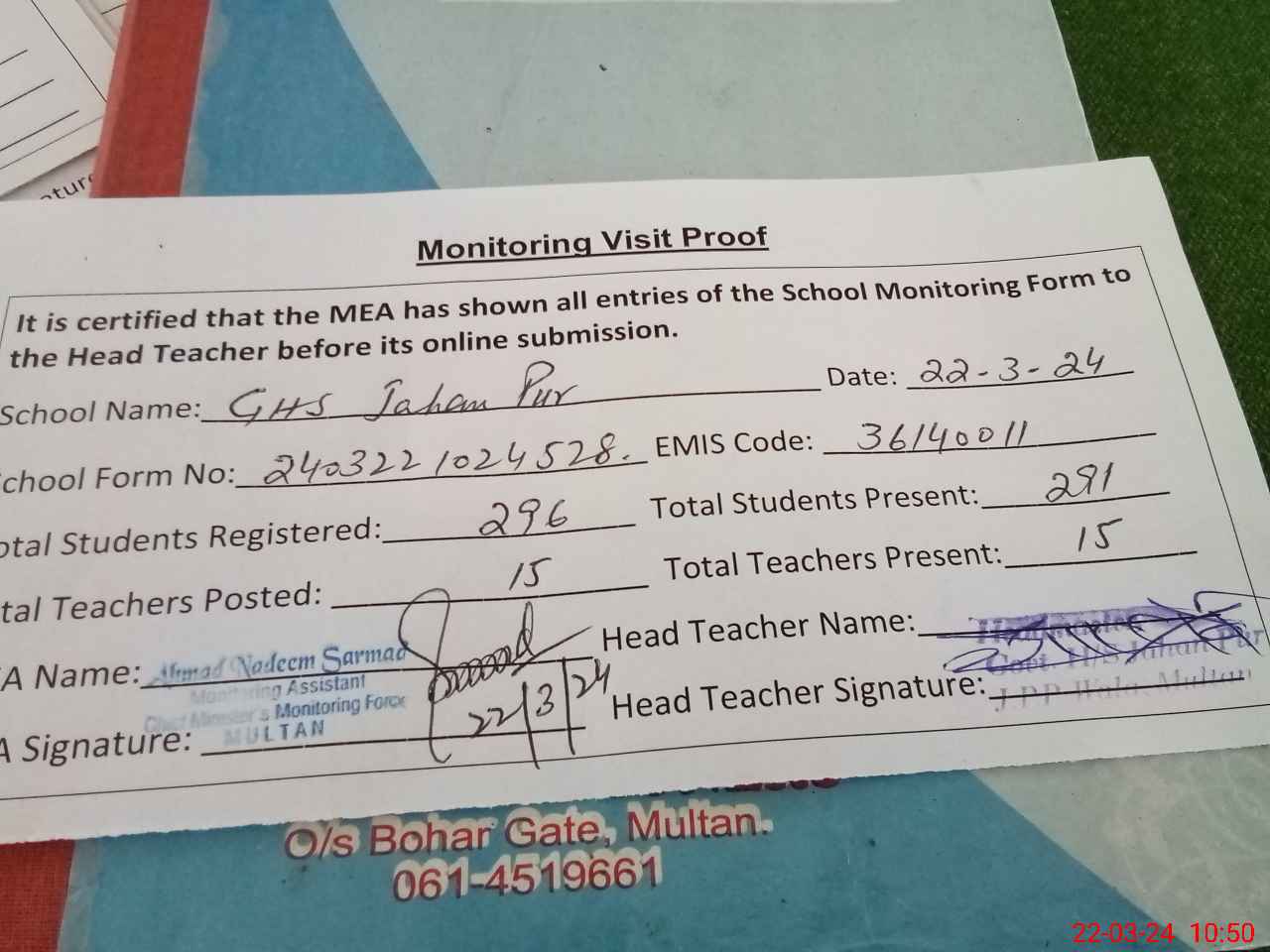 | EMIS Code: 36140011 | Name of School: GHS JAHAN PUR JALALPUR PIRWALA | |||