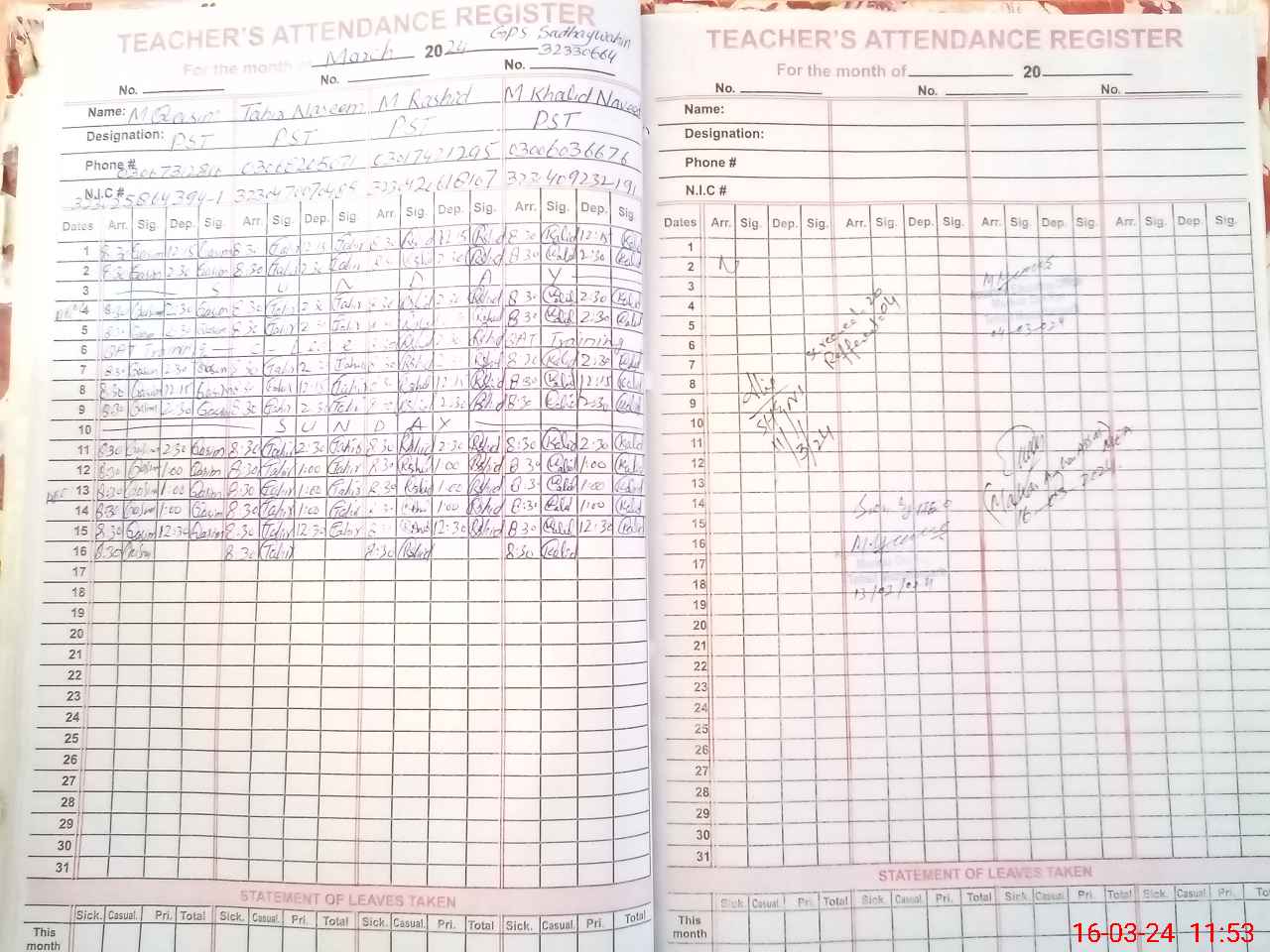 | Name: M.**** Designation: (School Headmaster's/Headmistress's) PST Phone/Cell Number: 03**** |