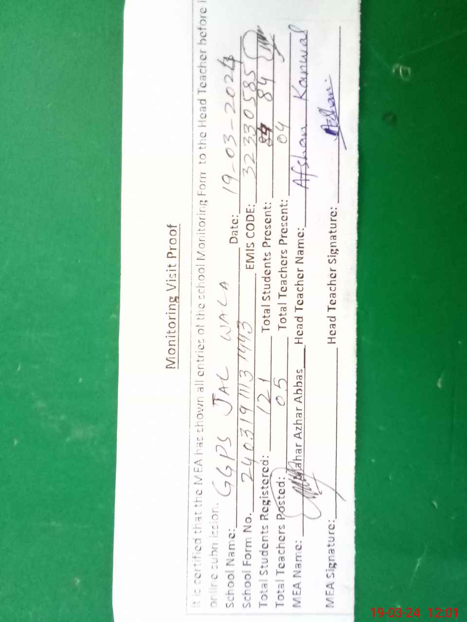 | EMIS Code: 32330585 | Name of School: GGPS JAL WALA | |||