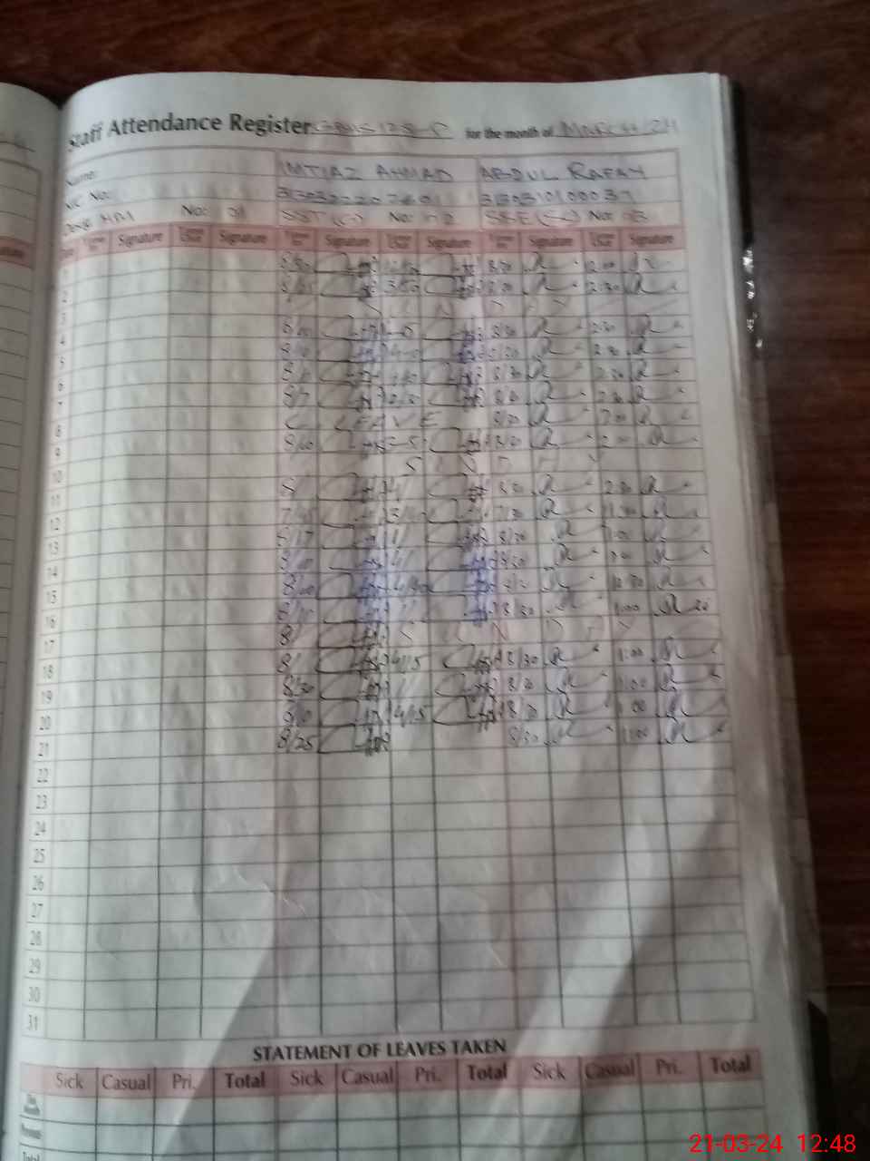 | 31**** | Hu**** Ab**** | 1 | 1 | 0 | 0 | 0 | 0 | 0 | 0 | 0 | 0 | 0 | Absent (Un-Authorized) |