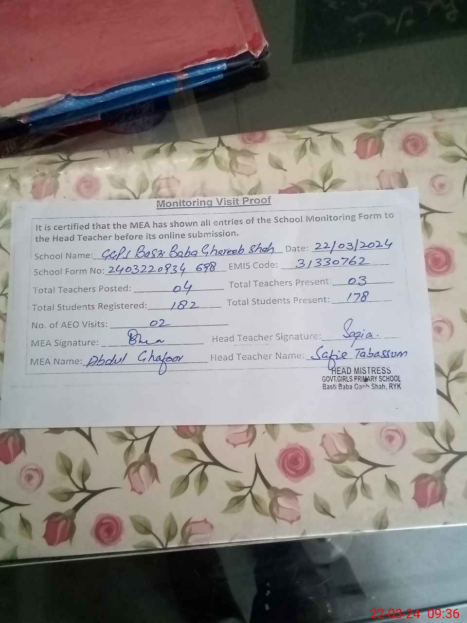| EMIS Code: 31330762 | Name of School: GGPS BASTI BABA GHARIB SHAH | |||