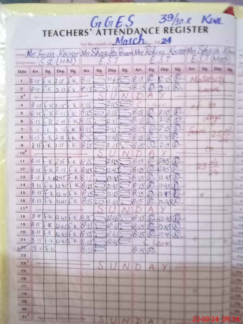 | 37**** | Se**** Kh**** | 1 | 29 | 0 | 0 | 29 | 0 | 0 | 0 | 0 | 0 | Maternity | |
