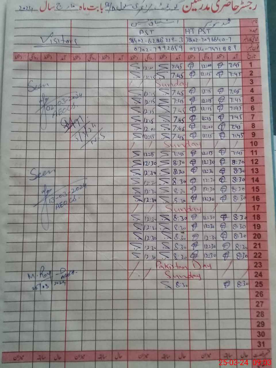 | Name: MTa**** Designation: (School Headmaster's/Headmistress's) PST Phone/Cell Number: 03**** |