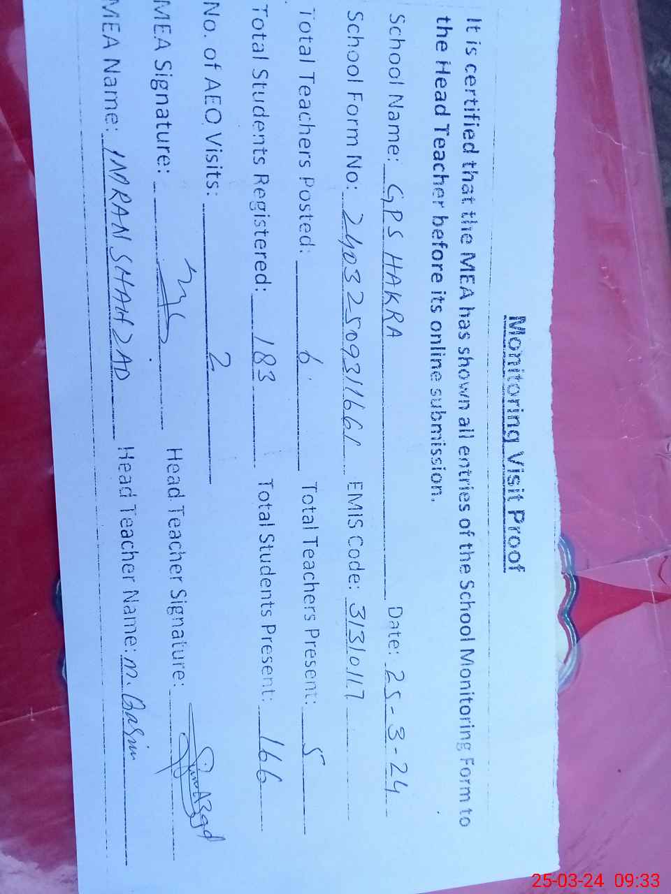 | EMIS Code: 31310117 | Name of School: GPS HAKRA | |||