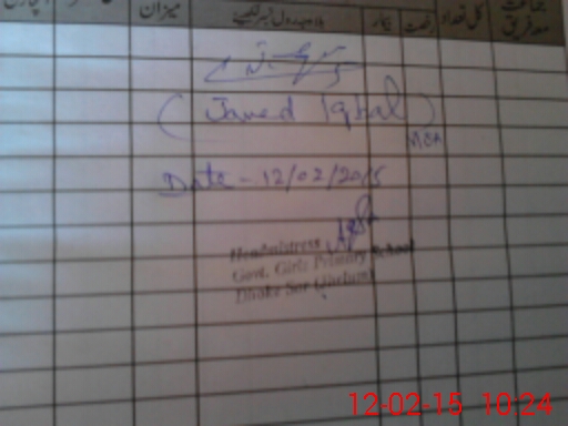 | Name: Ir**** Ha**** Designation: (School Headmaster's/Headmistress's) Headmistress Phone/Cell Number: 03**** |