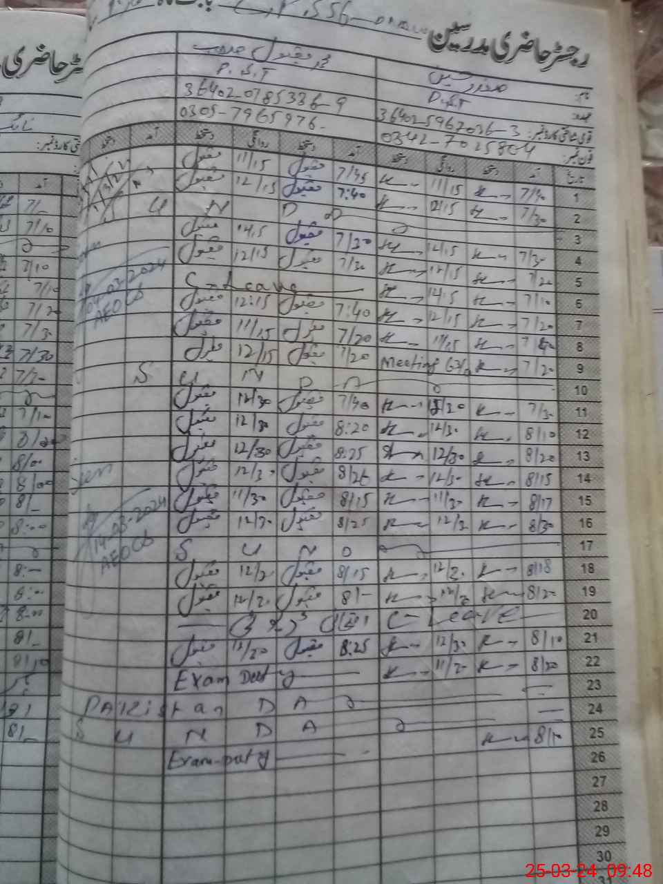 | CNIC | Full Name | Designation | R/C | Absence During Last Calender Month |