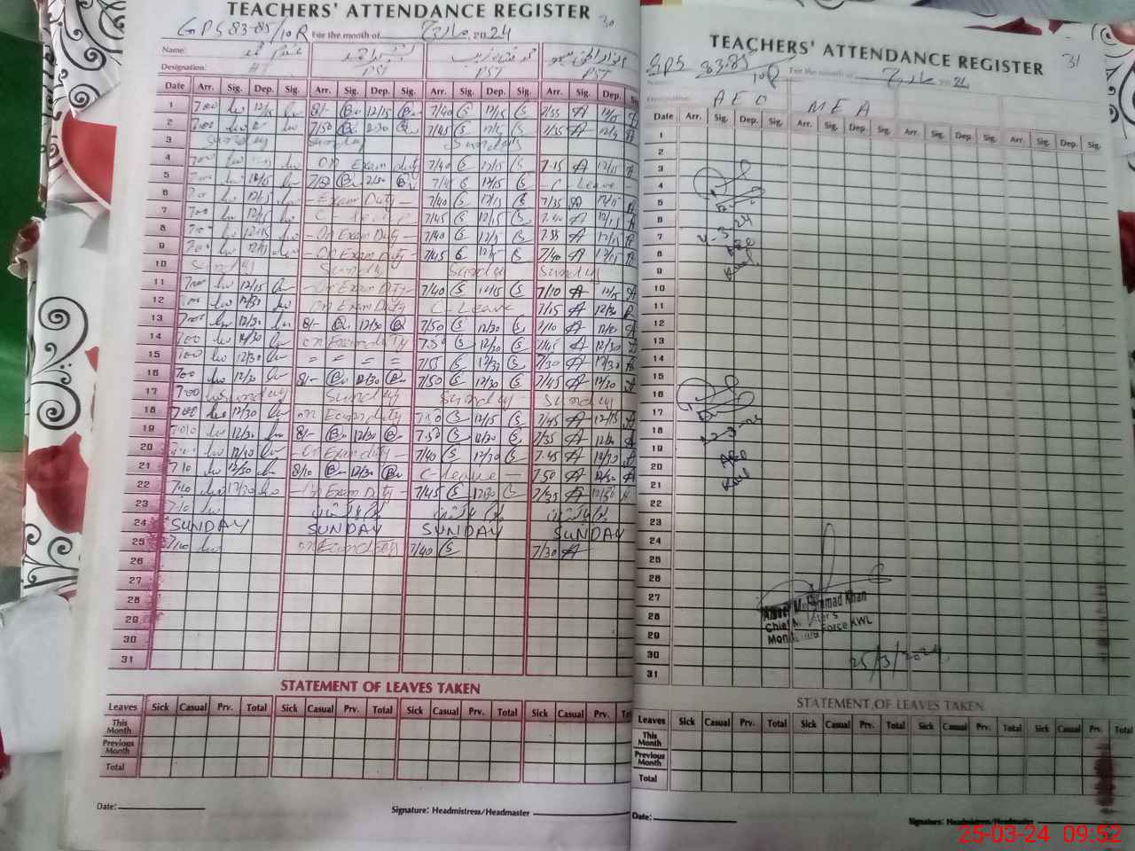 | 36**** | Ba**** Ah**** | 1 | 1 | 0 | 0 | 0 | 0 | 0 | 0 | 0 | 0 | 0 | Exam Duty |