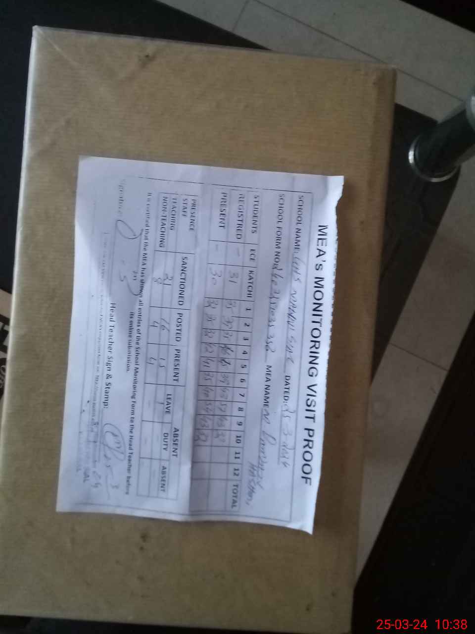 | Attendance Register | Head Teacher | MEA with School | Visit Proof |