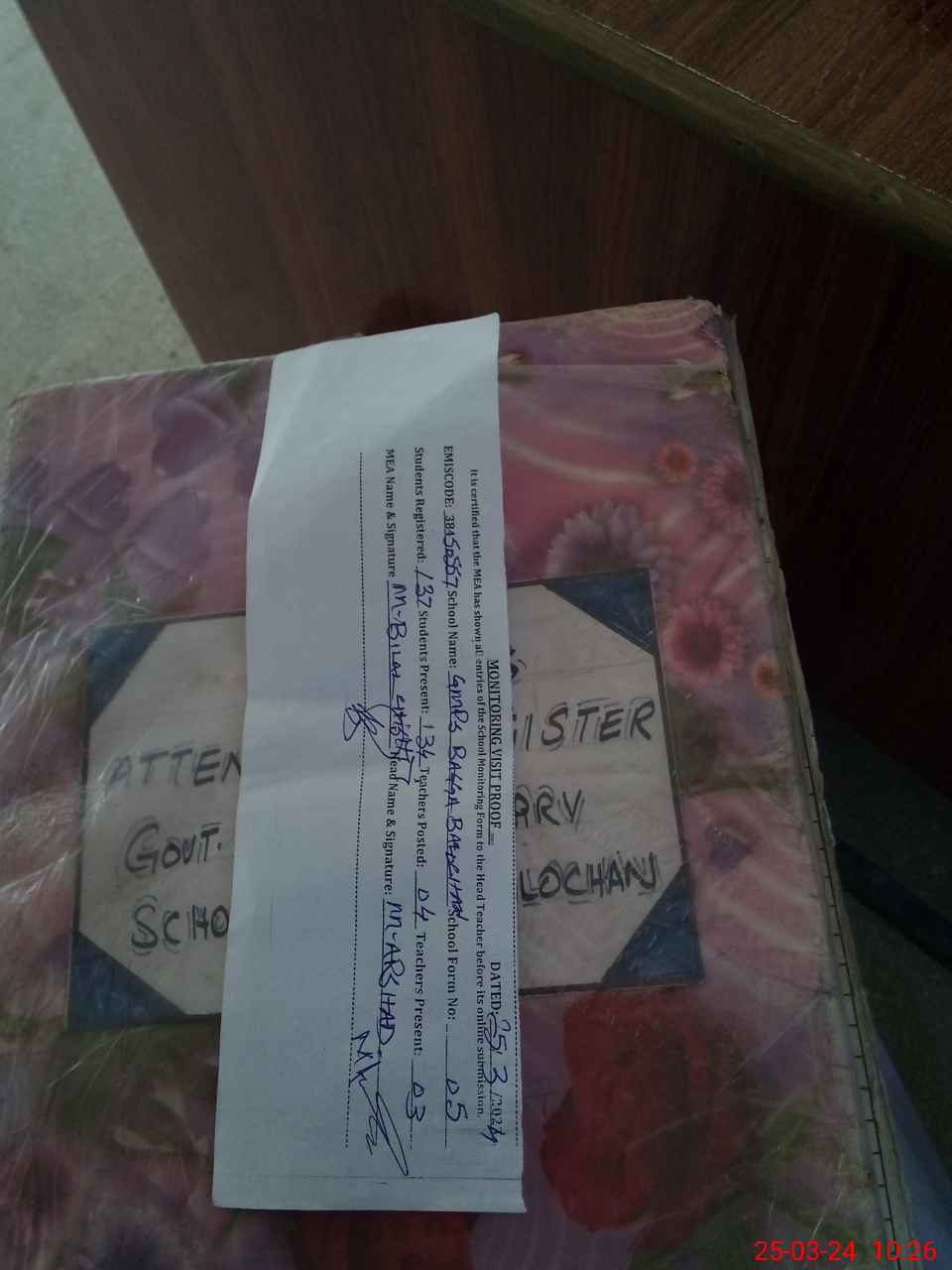 | Attendance Register | Head Teacher | MEA with School | Visit Proof |