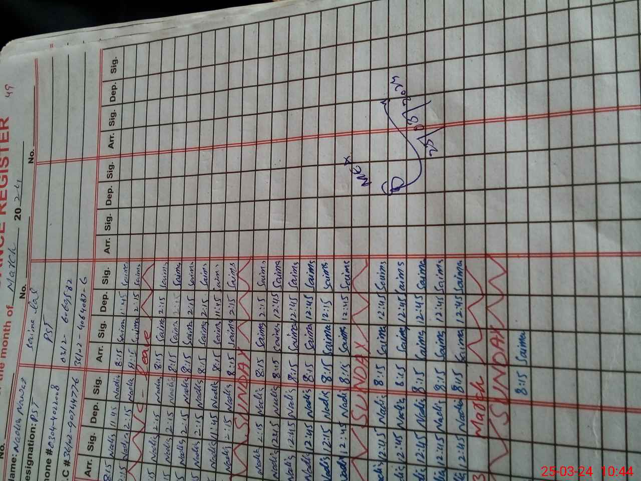 | Monitoring Date: 25-03-2024 | Start Time: 25-03-2024 10:22 AM | End Time: 25-03-2024 10:55 AM | Name of MEA: Sa**** Ah**** | |