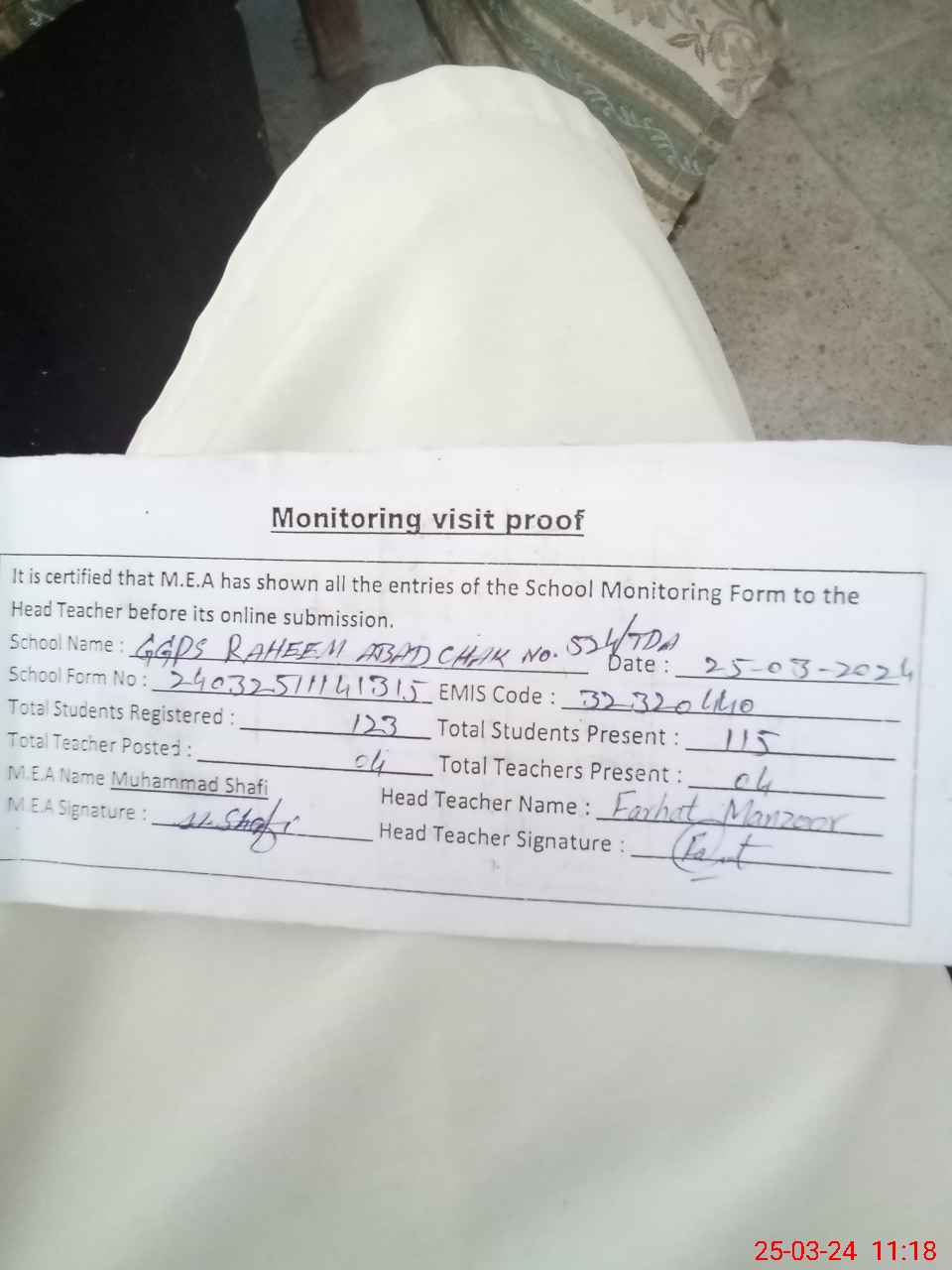 | EMIS Code: 32320440 | Name of School: GGPS RAHIM ABAD CHAK NO. 524/TDA | |||