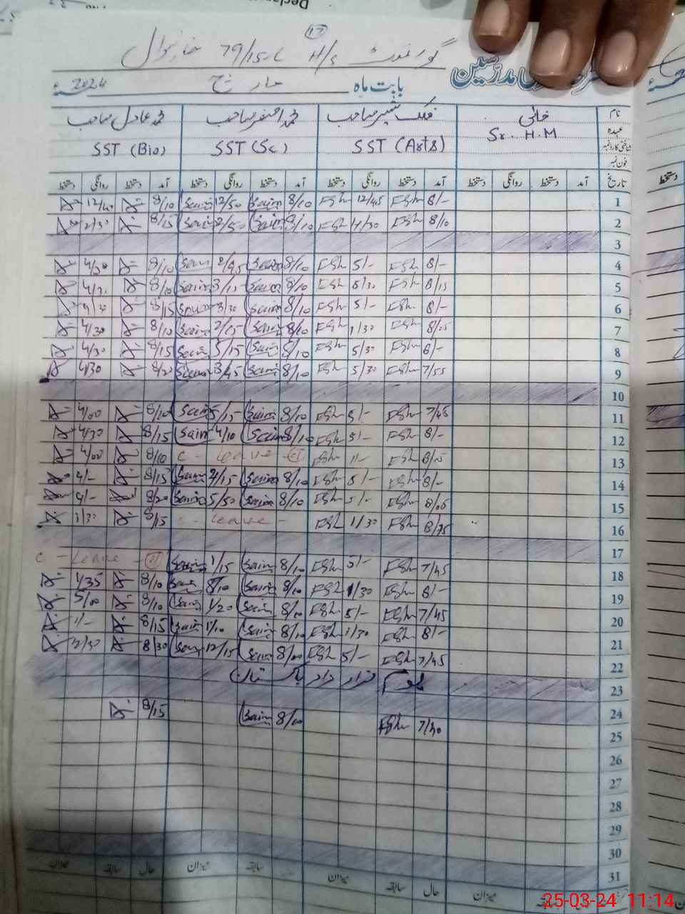 | 36**** | Mu**** Yo**** | 3 | 1 | 0 | 0 | 0 | 0 | 0 | 0 | 0 | 0 | 0 | Exam Duty |