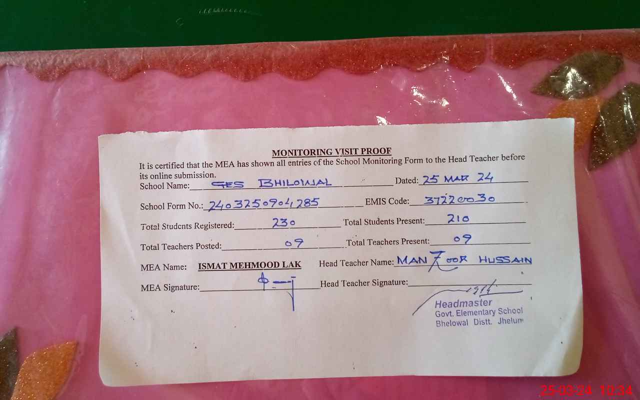 | EMIS Code: 37220030 | Name of School: GES BHILOWAL | |||