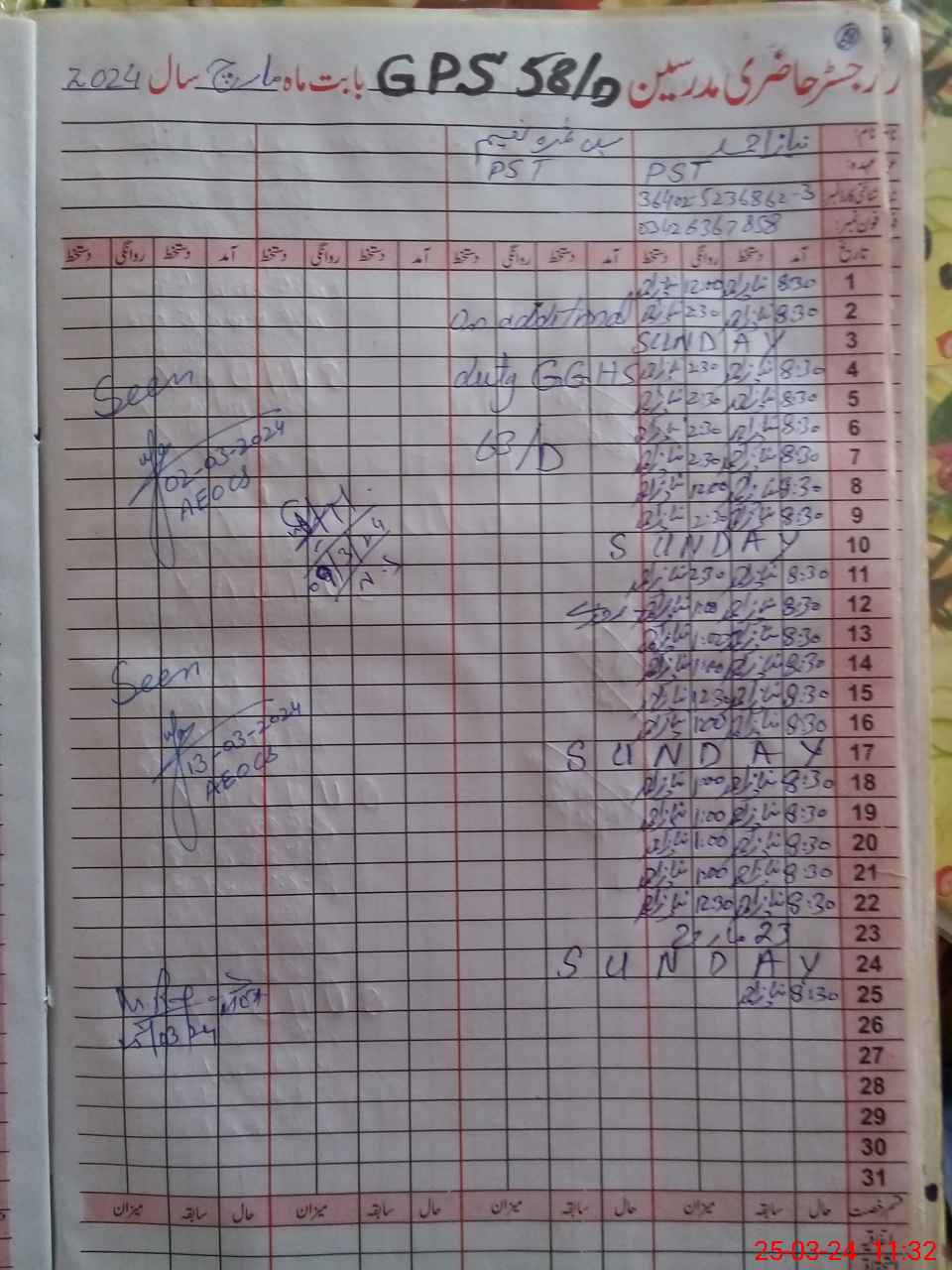 | Name: Sy**** Sa**** Na**** Designation: (School Headmaster's/Headmistress's) PST Phone/Cell Number: 03**** |