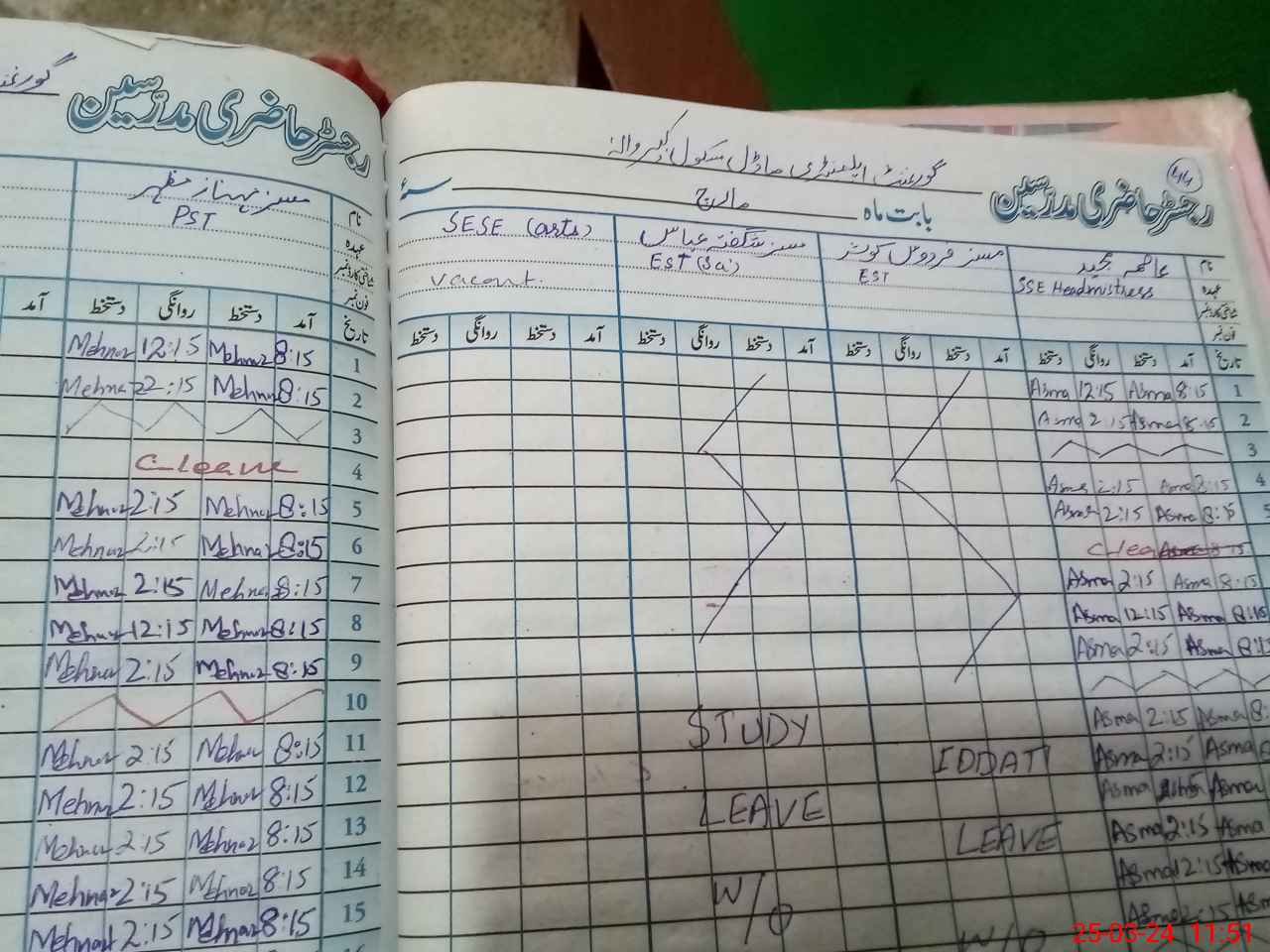 | Leave | Duty | Absent | Maternity | Medical | Ex- Pak |
