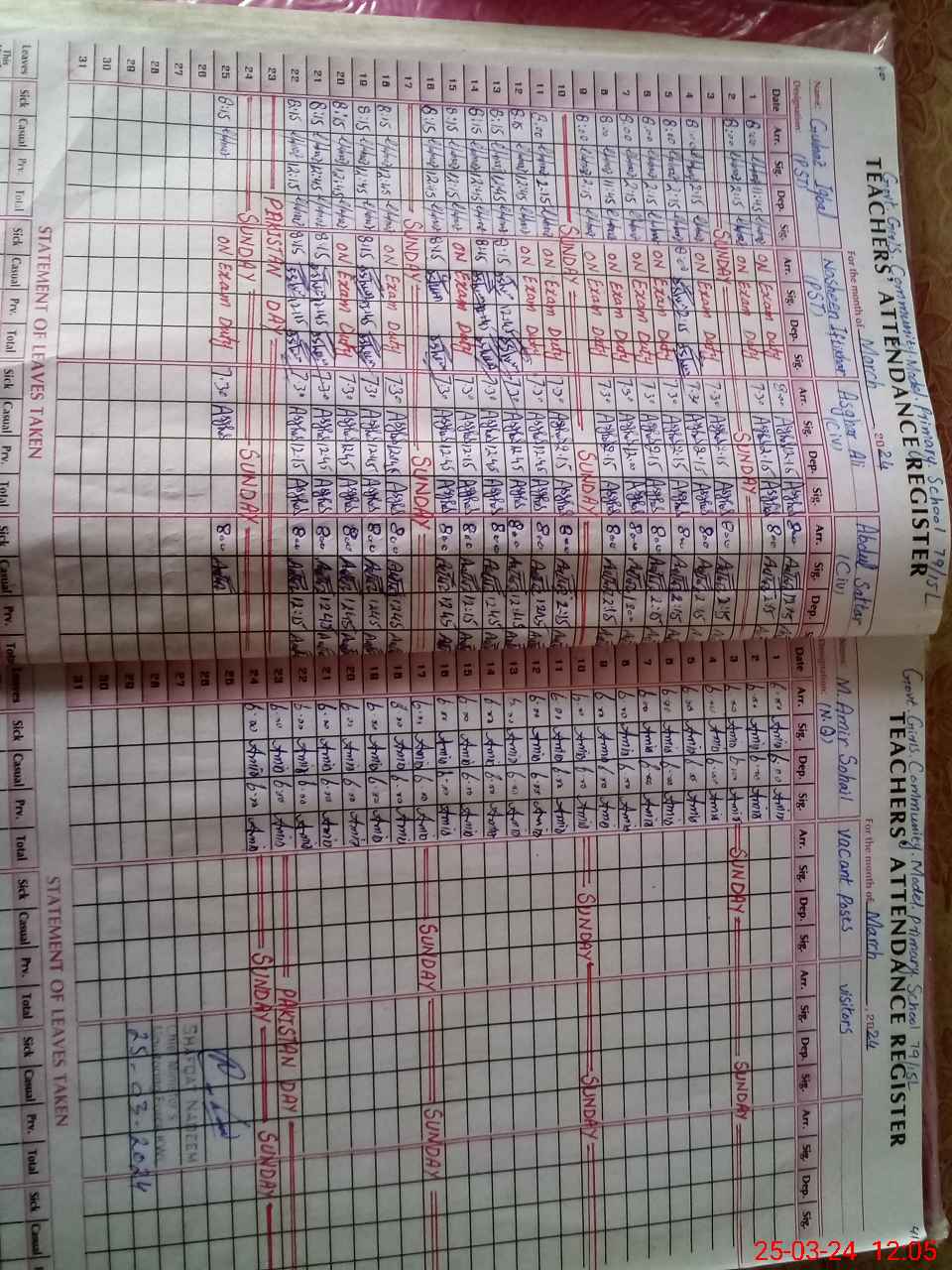 | Leave | Duty | Absent | Maternity | Medical | Ex- Pak |